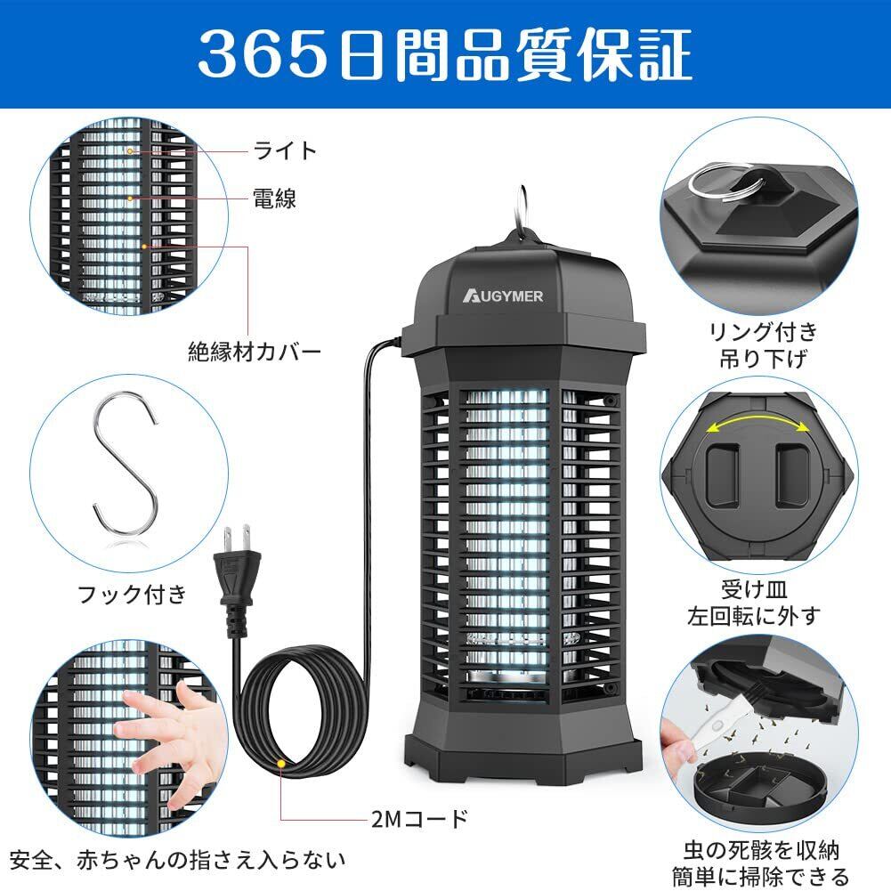 【特価セール】AUGYMER 電撃殺虫器 捕虫器 18W IPX4防水 2Mケーブル付き 蚊取り 虫取り機 電気ショック 殺虫灯 コバエ撃退 虫対策 電撃殺虫灯 UV光源吸引式殺虫器 蚊除けライト 蚊取り機 誘蛾灯 蚊よけ 蚊取り 虫 対策 グッズ 電気 虫除け 蚊取り器 室内 捕虫蛍光灯 電撃殺虫機 室内 蛾 蚊 コバエ 台所/寝室/居間/オフィス/飲食店などに適用