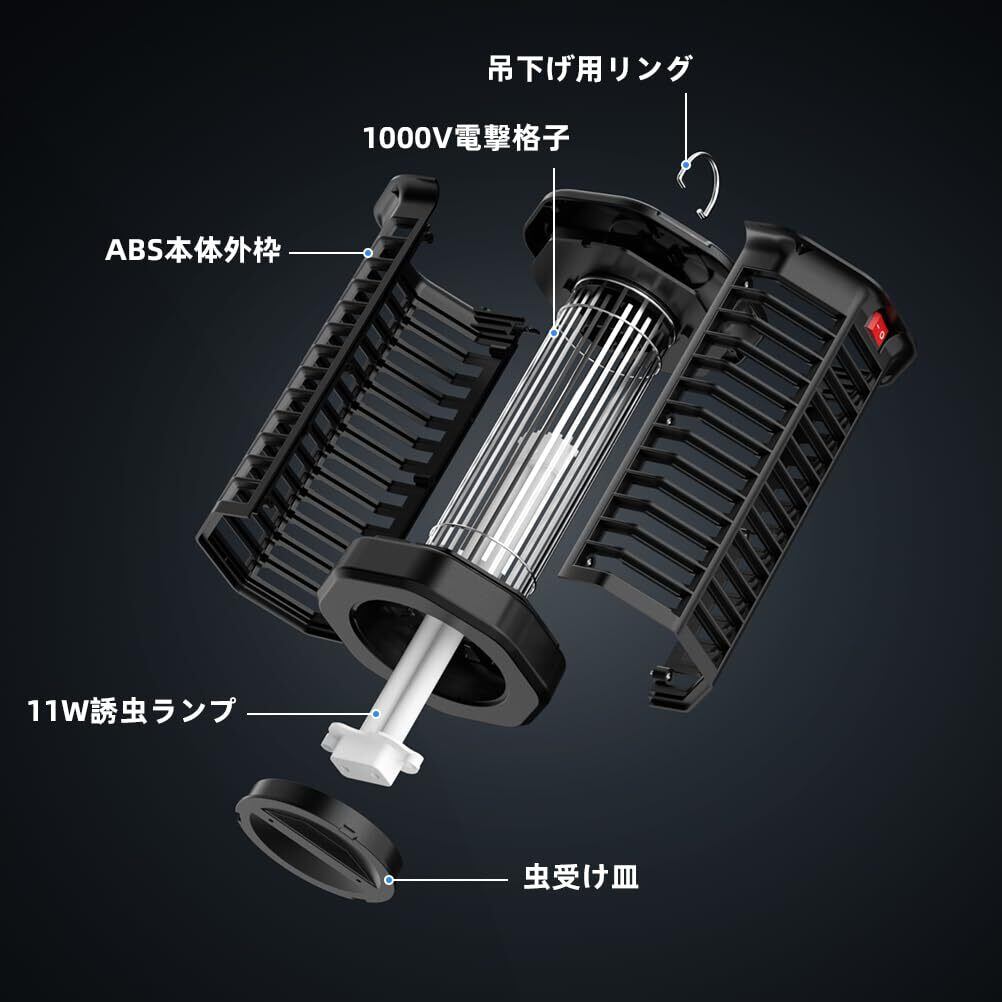 11W強力電撃殺虫器:蚊やユスリカ、コバエなどの害虫を誘虫ランプで誘き寄せ、火も使わなくて、1000V高電圧の電撃格子に触れた瞬間時に殺虫できる電撃殺虫器です。害虫の好む光の波長で虫を誘い、いやな臭いも煙も出さずに瞬間的にショック死させます。お子様や妊婦の方、ペットのいる家でもお勧めです。
