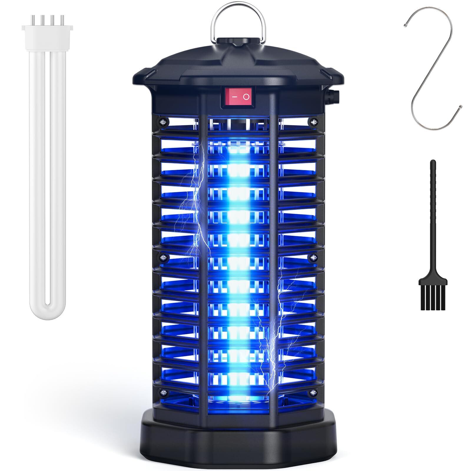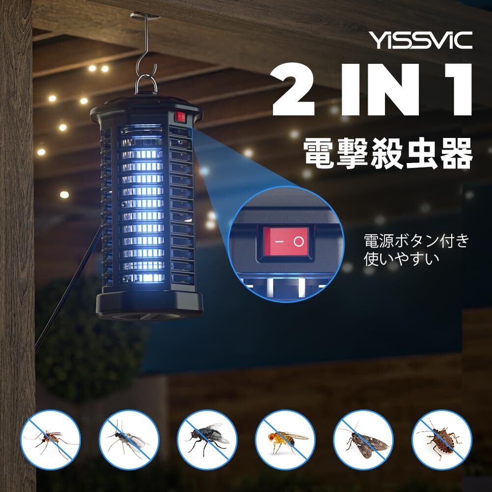 YISSVIC 電撃殺虫器 1000V高圧コバエ取り スイッチ付き捕虫器 11W誘蛾灯 蚊取り UV光源誘引式殺虫灯 強力虫除け 吊るす用のチェーンとフックも付属 薬剤不要 寝室 居間 台所 ベランダ 玄関などに適用 屋内と軒下で使用 薬剤不要