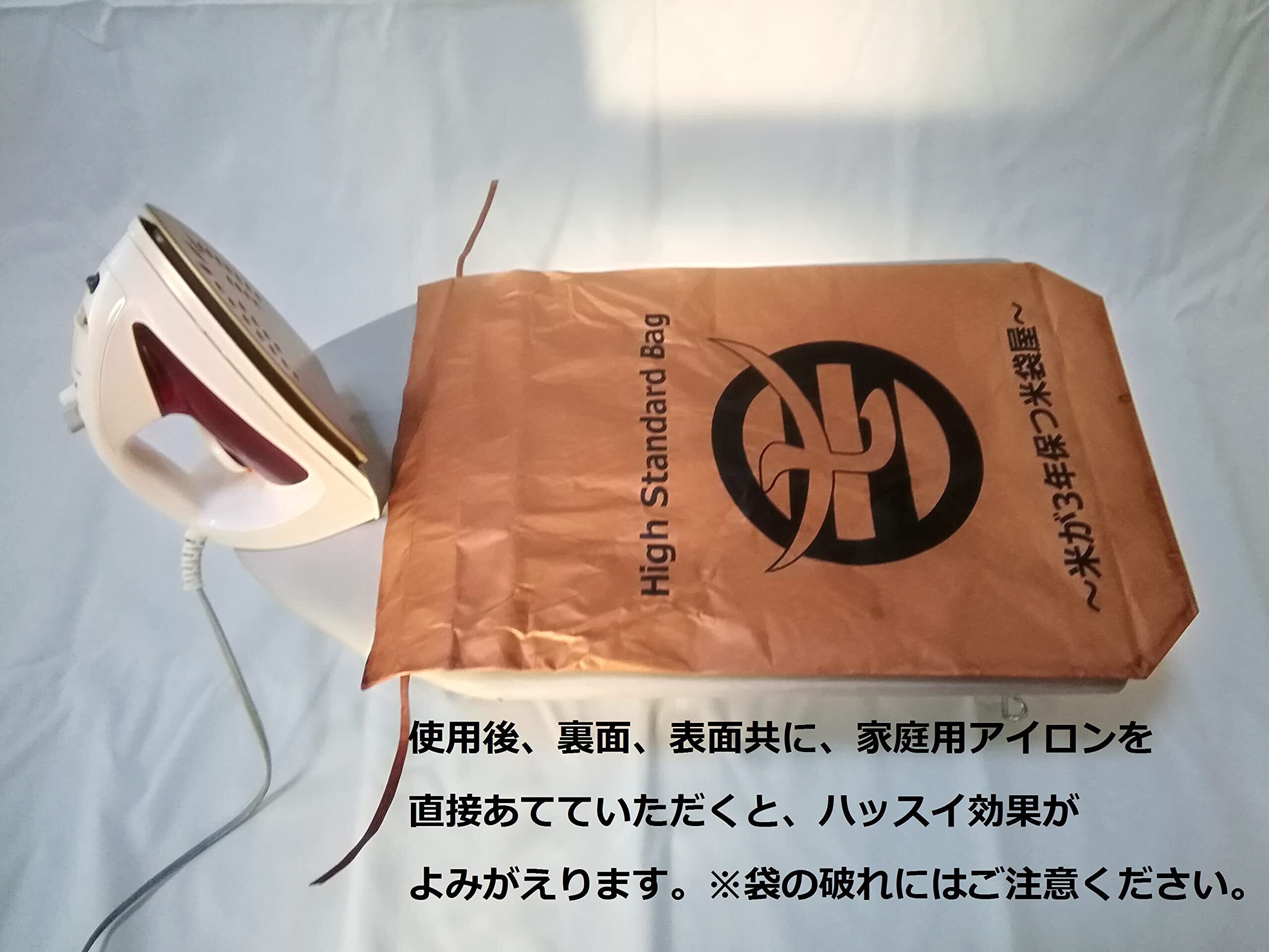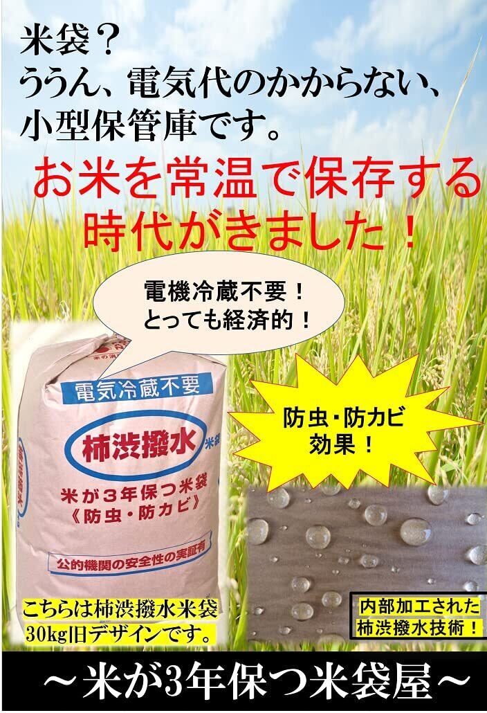 米が3年保つ米袋屋 ハイスタンダードバッグ 10㎏用×3枚(柿渋撥水米袋 )■玄米常温保存において3年2ヵ月保つ公的データを実証しております。 ■お米、玄米を購入時の袋から取り出し、当社袋に直接移し替えてください。袋口を締める際、袋内部の空気を出来るだけ抜いた後、3回以上折りたたみ、しっかりとヒモを結んでください。 ■中身が入っている状態で持ち上げる際は、ヒモを持たず、必ず本体を両手で持ってください。ヒモ破れの原因となります。 ■防虫・防カビ・防腐・防水・強化に優れた日本古来の伝統技術である「柿渋」を特殊加工した商品となります。電機冷蔵不要で、常温での保存が可能です。使用後は、空袋にして1日天日干しすれば繰り返し利用可能な経済的にも大変お得です。 ■近年では、備蓄用や贈答用として多くの皆様にご利用頂いております。※2020年よりデザインが一新しております。効果は以前同様です。ご安心ください。 ■こちらの商品は、1枚1枚丁寧に手仕上げ製法しておりますが、色むらや、液ダレ、まだら模様等製法上どうしても外観に発生してしまいます。また袋内部底にも、柿渋液が染みこみんでいる場合がございすが、ご利用していただく上では問題ございません。品質は基準をクリアしているものです。 神経質な方は、手仕上げ製法の柿渋ハッスイ米袋のご購入を控えていただくか、内部に加工を施した30㎏用サイズをお求めください。 ■【注意】柿渋撥水米袋の各種効果、実証は、お米の品質をするものではありません。お米の保管場所、お米の状態等で、害虫やカビの発生もあり得ます。取り扱いには十分ご注意ください。