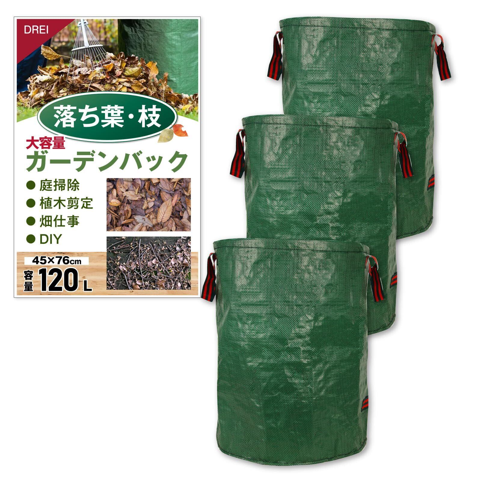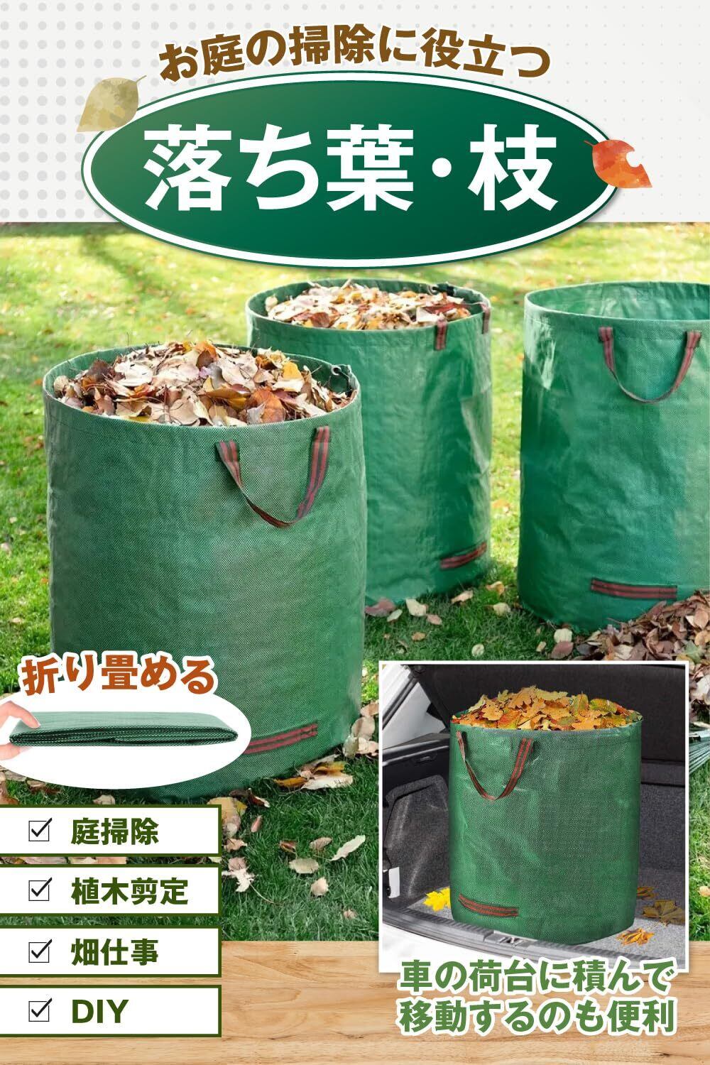【大容量×軽量タイプ】 ガーデンバッグ 収穫袋 雑草 落ち葉 剪定 カゴ 道具入れ 組み立て式 防水 ゴミ入れ 収納袋 農作業 アウトドア (120L(3個入り))