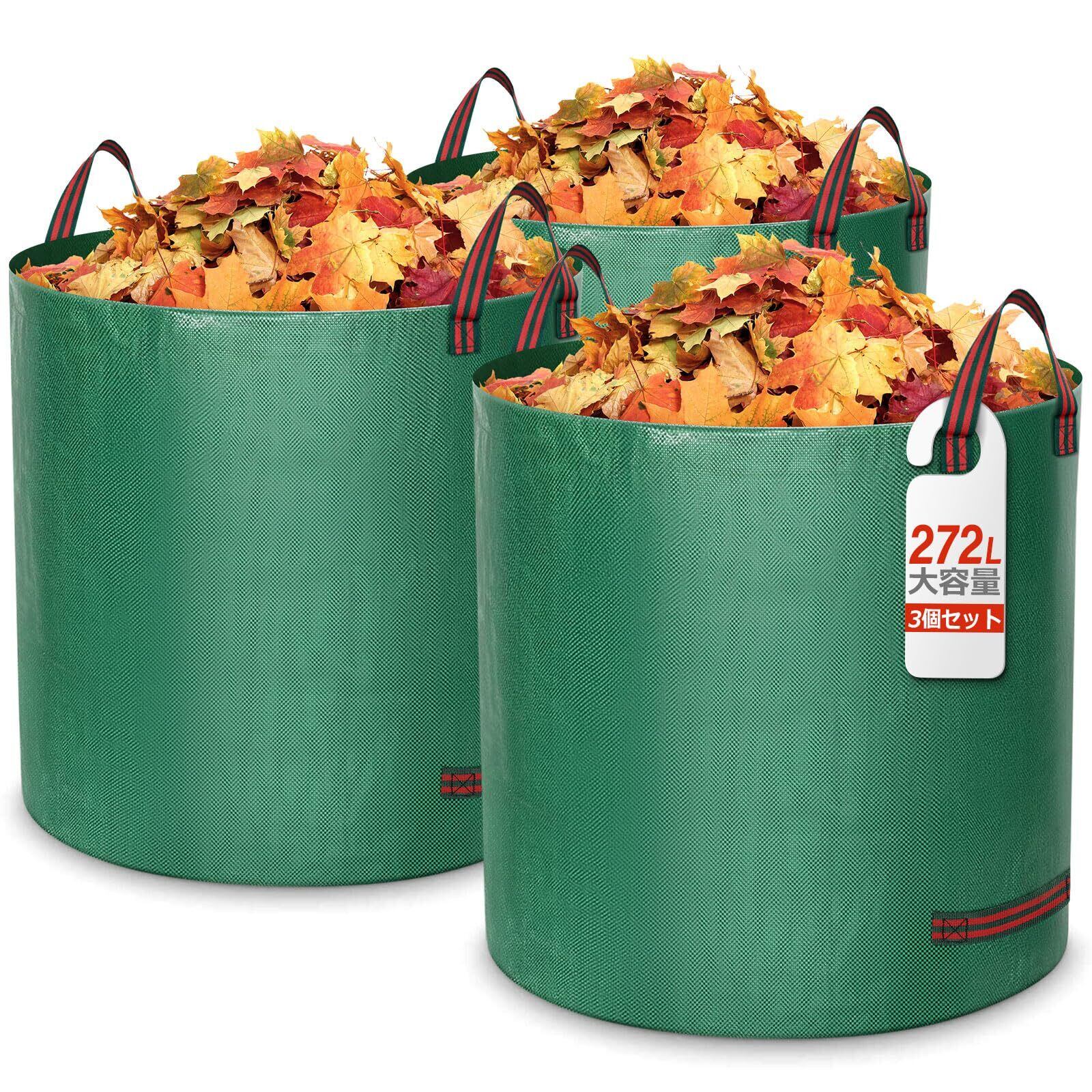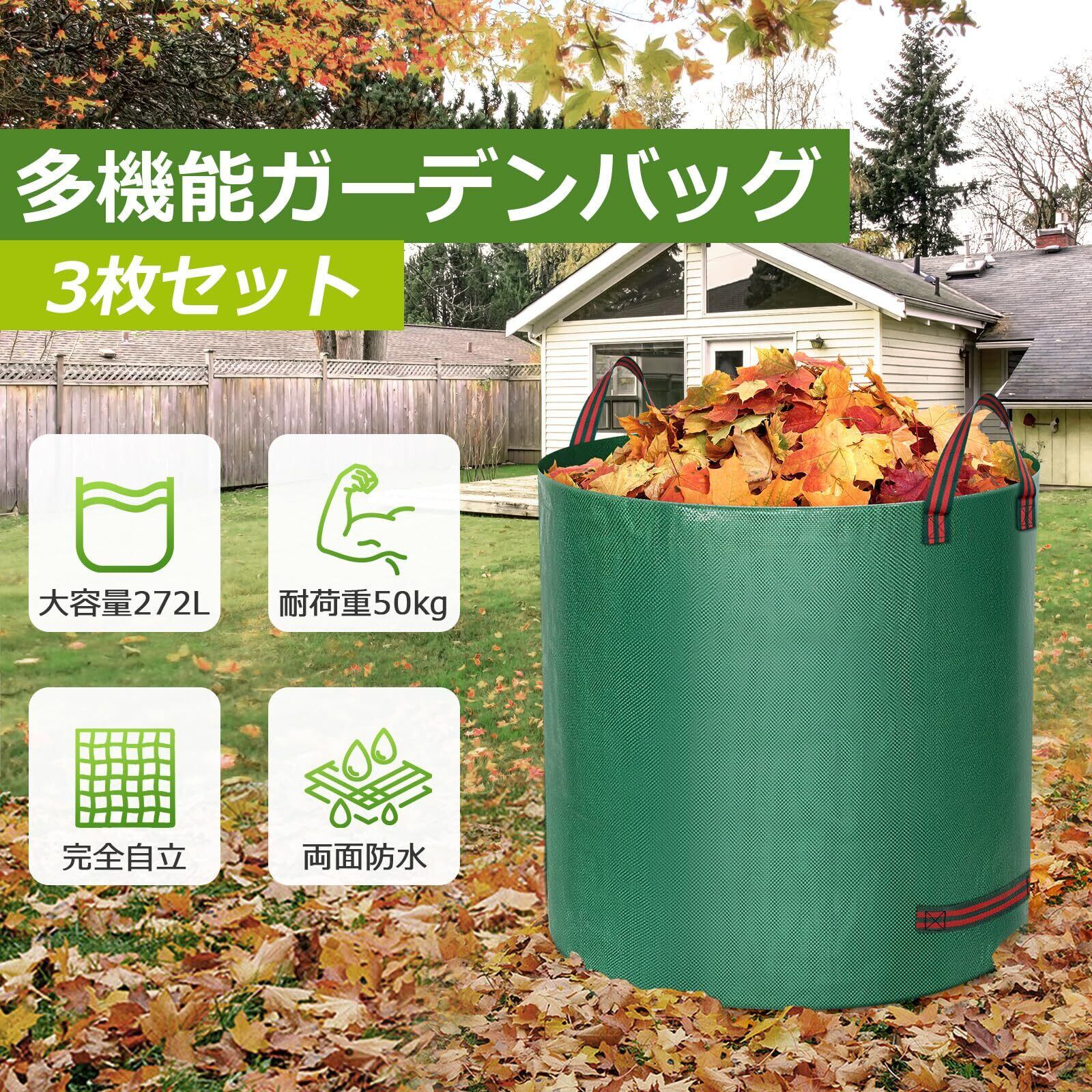 【人気商品】ガーデンバッグ 大容量272L 3個入り 防災 収納袋 ガーデンバケツ フレコンバッグ 集草バッグ 大型庭用袋 自立式 折り畳み 再利用可能な 環境に優 防水 集草バッグ お庭の清掃 ごみ落ち葉の処理用 防災グッズ 園芸用