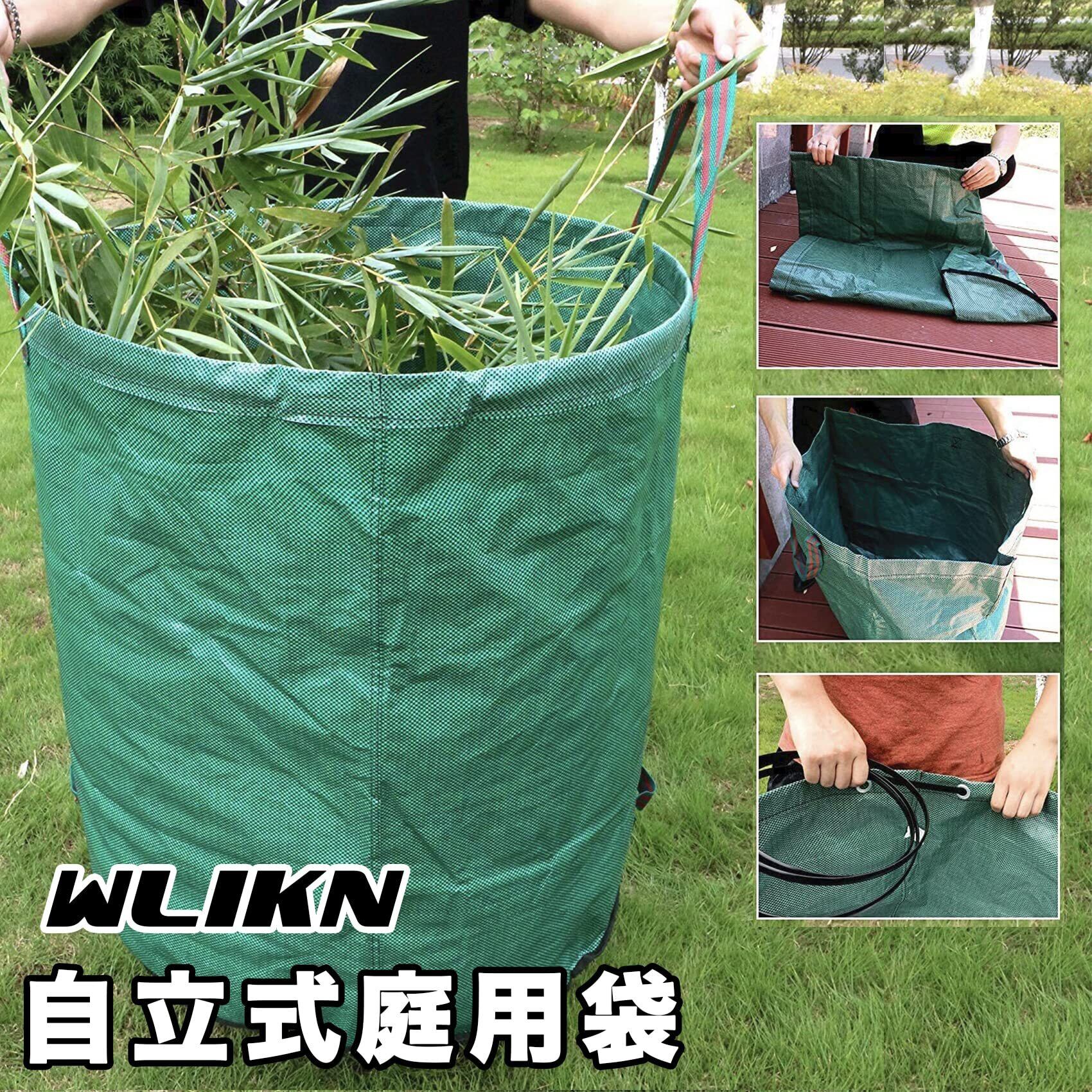 Wlikn ガーデンバッグ 400L 2パック 再利用可能 麻袋 自立式 折りたたみ式 大型 庭用袋 ハンドル付き たい肥 落ち葉 集草 収穫用 園芸用 ゴミ袋 コンポストバッグ