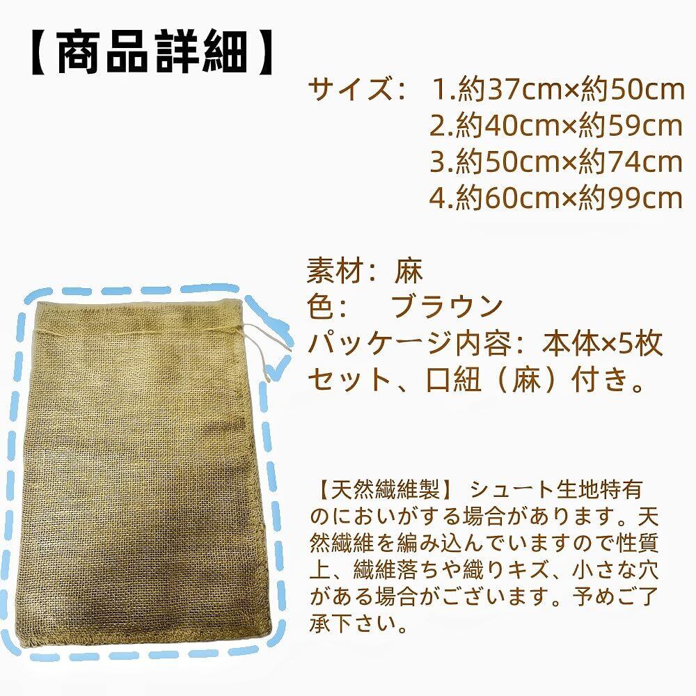 【商品詳細】サイズ:約40cm×約59cm、素材:麻、色:ブラウン、パッケージ内容:本体×5枚セット、口紐(麻)付き