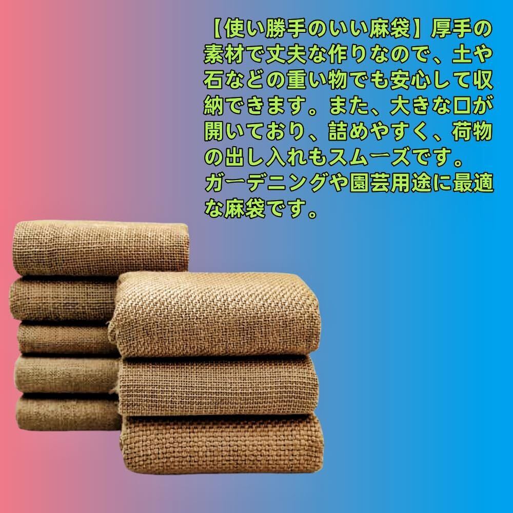 【使い勝手のいい麻袋】厚手の素材で丈夫な作りなので、土や石などの重い物でも安心して収納できます。また、大きな口が開いており、詰めやすく、荷物の出し入れもスムーズです。ガーデニングや園芸用途に最適な麻袋です。