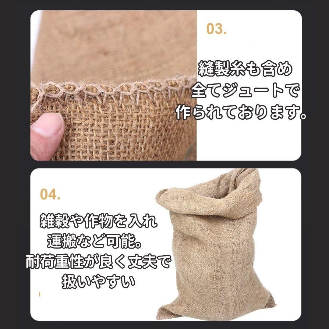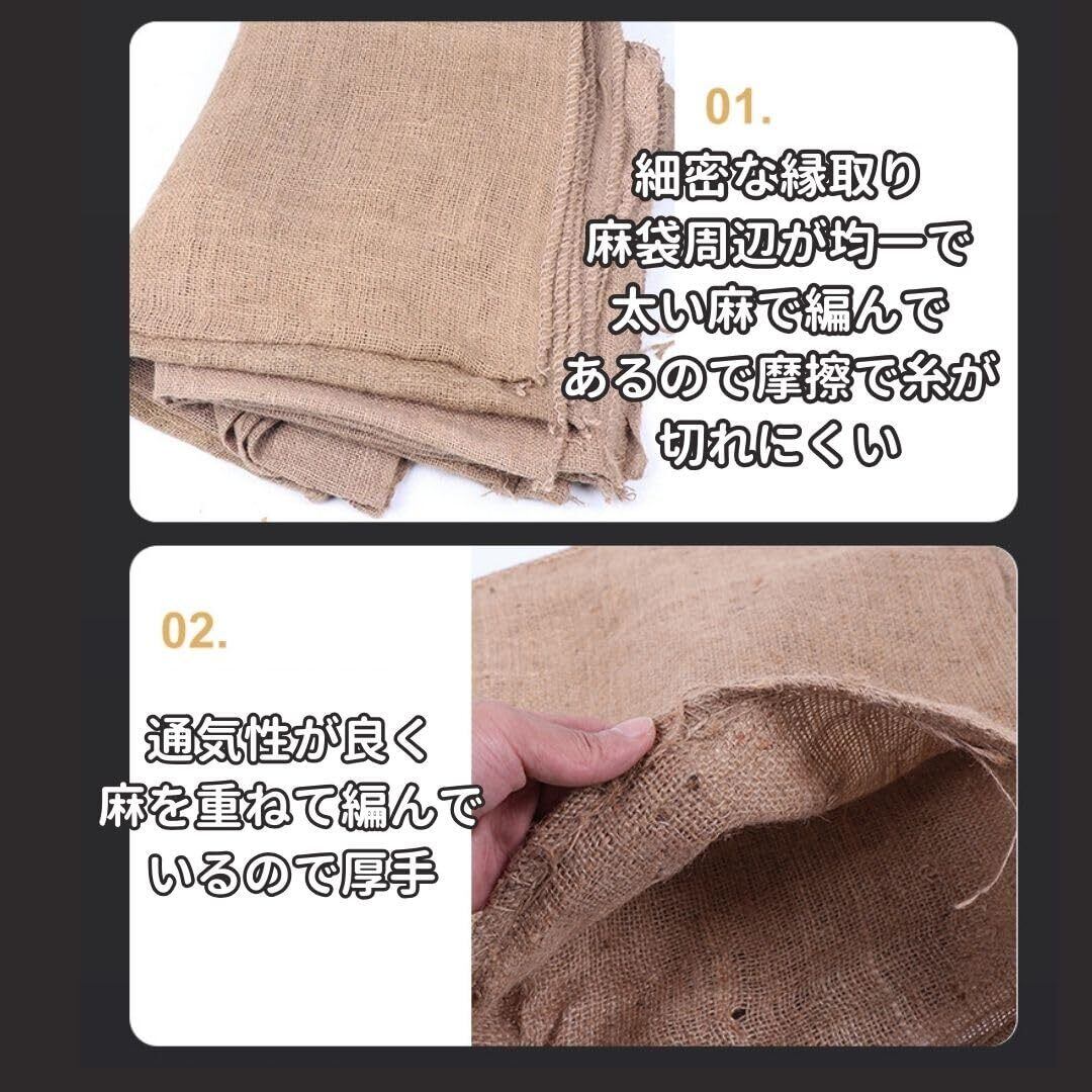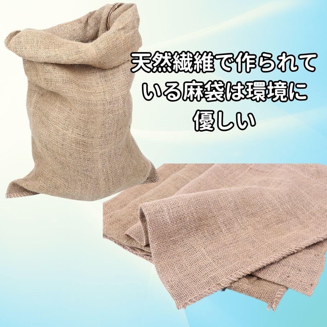 【強度あり資材としても】天然繊維で作られているため環境負担が低く麻の繊維には毒性はありません。通気性が良く農作物の変質を防ぐことができます。穀物、豆類、野菜、果物、また工事現場や災害時の土のう袋としてもお使いいただけます。