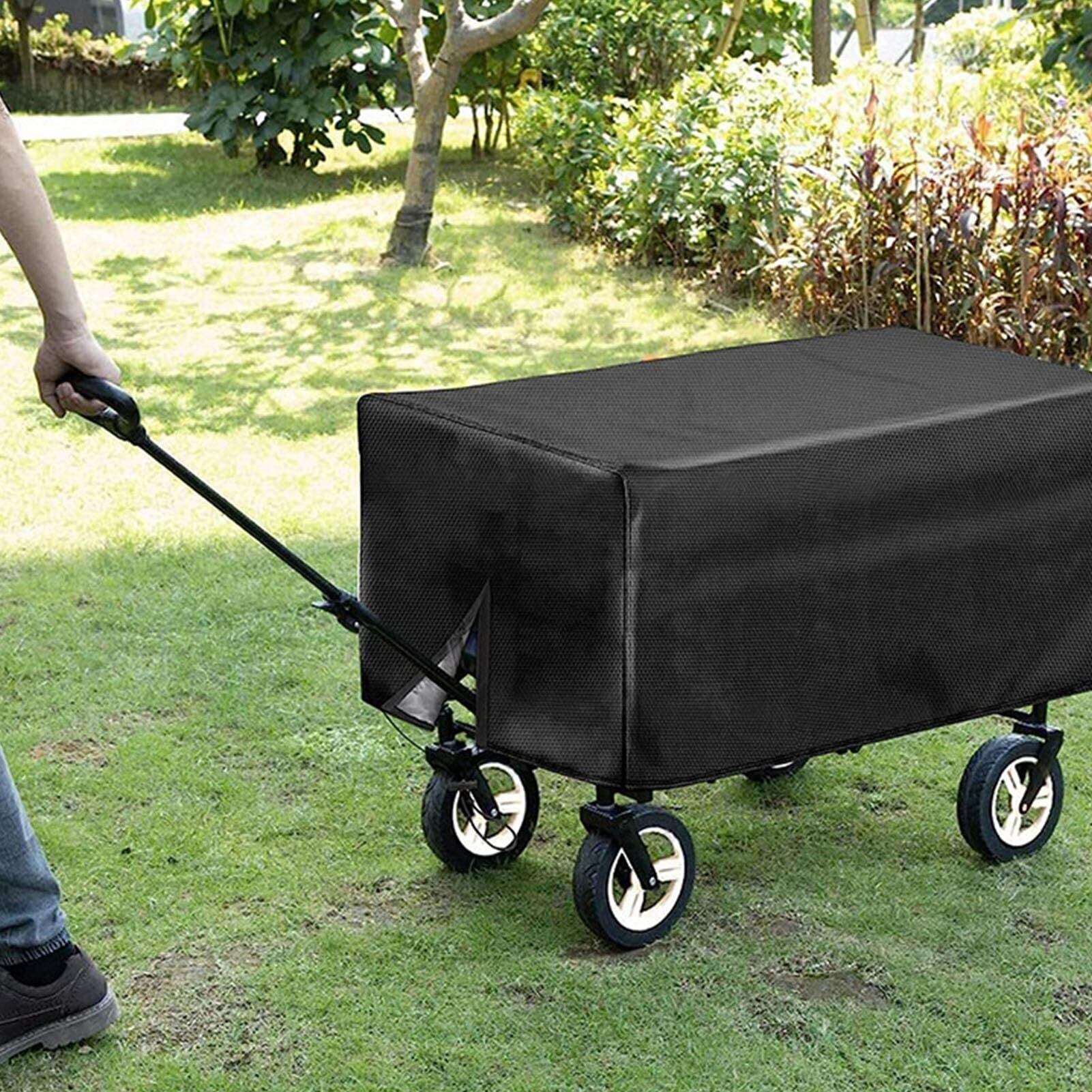 屋外折りたたみワゴンカバー、防水防塵210Dオックスフォード布保護カバー、高耐久折りたたみ式ガーデンワゴンカートレインカバー、キャンプガーデン用UV耐性 (137×56×61cm)