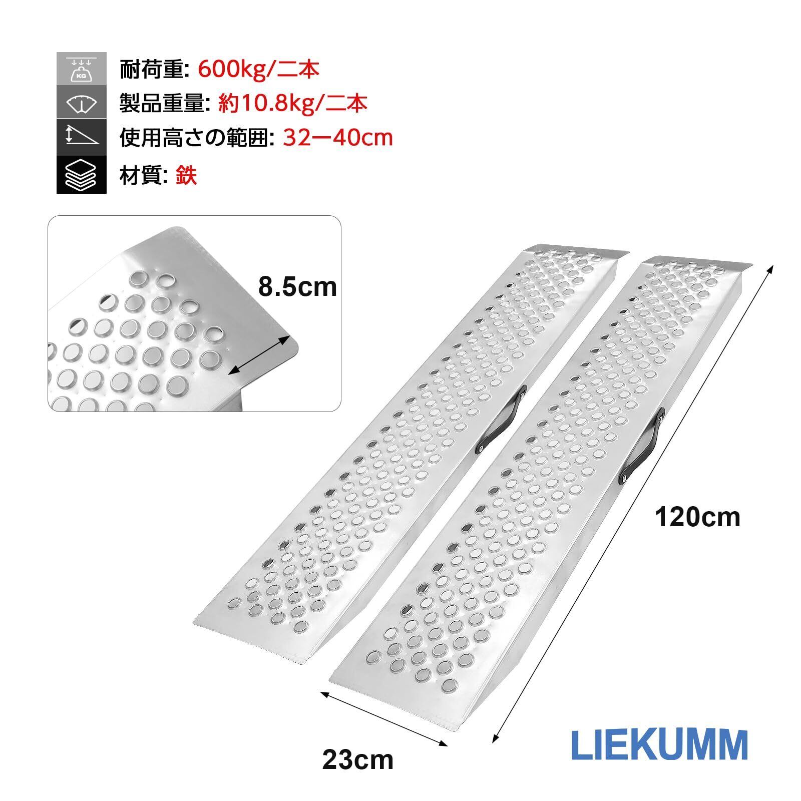 【特価セール】LIEKUMM バイク スロープ 2本 長さ120cm 耐荷重600kg スチール製 バイク ラダーレール 滑り止め 耐久 ATV四輪バギー 草刈り機 農機具用 貨物運搬 軽トラ トレーラーへ積載用 ラダーレール