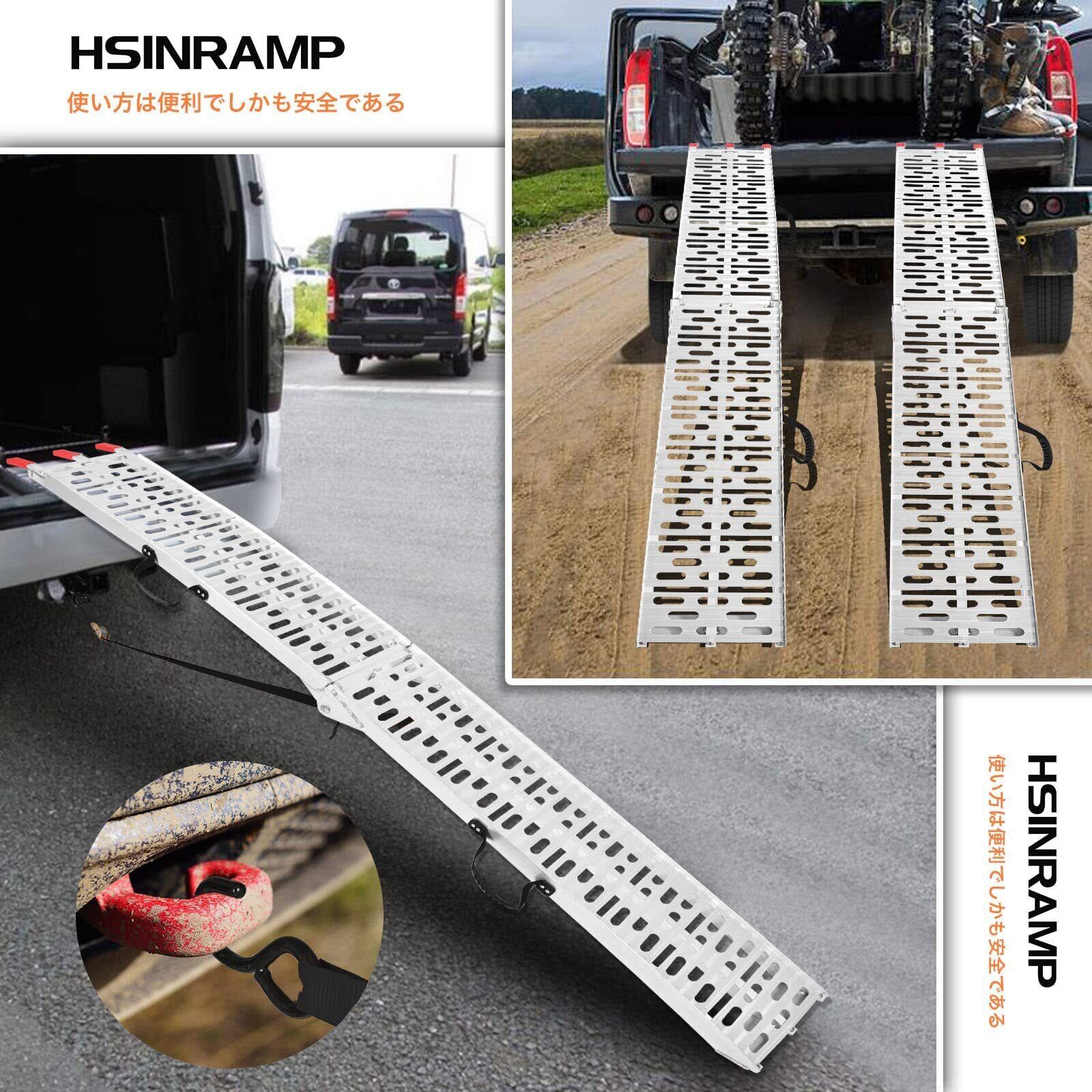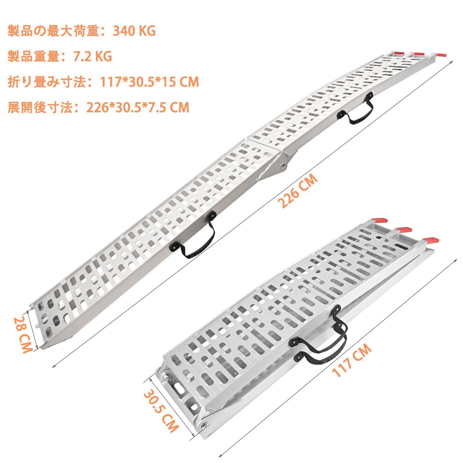 長さ227.5cm 幅30.5cm 耐荷重680kg アルミラダーレール 2本セット 折り畳み式 軽量 バイク スロープ ラダーレール バイク アルミラダー 滑りにくい 取っ手付き アルミブリッジ
