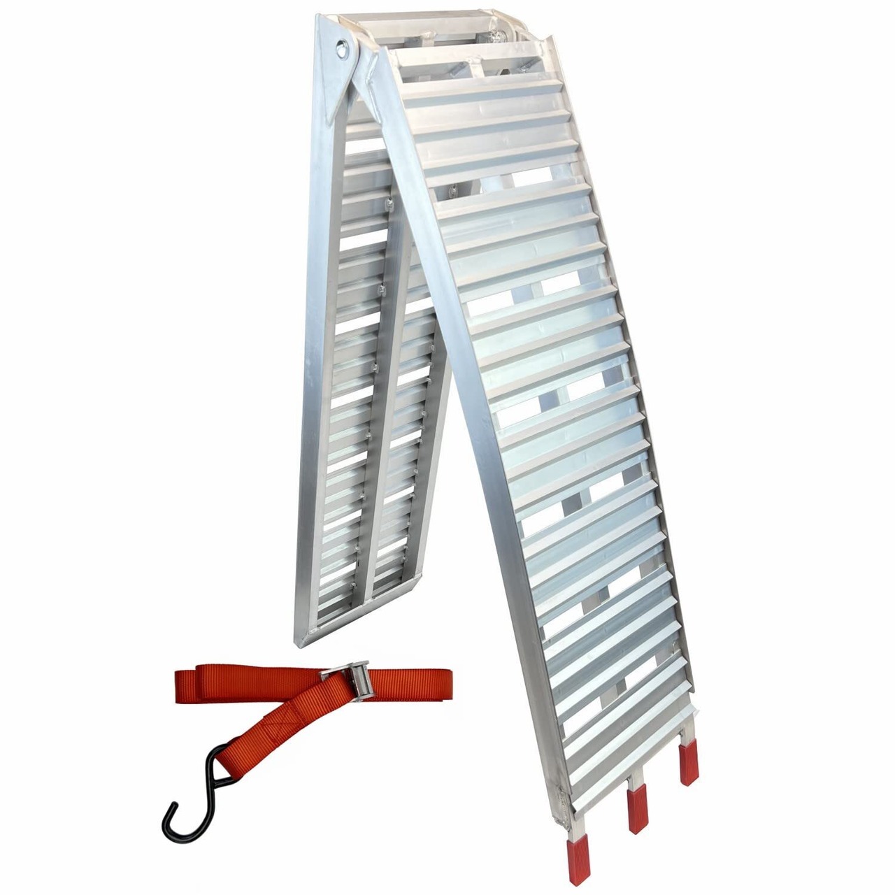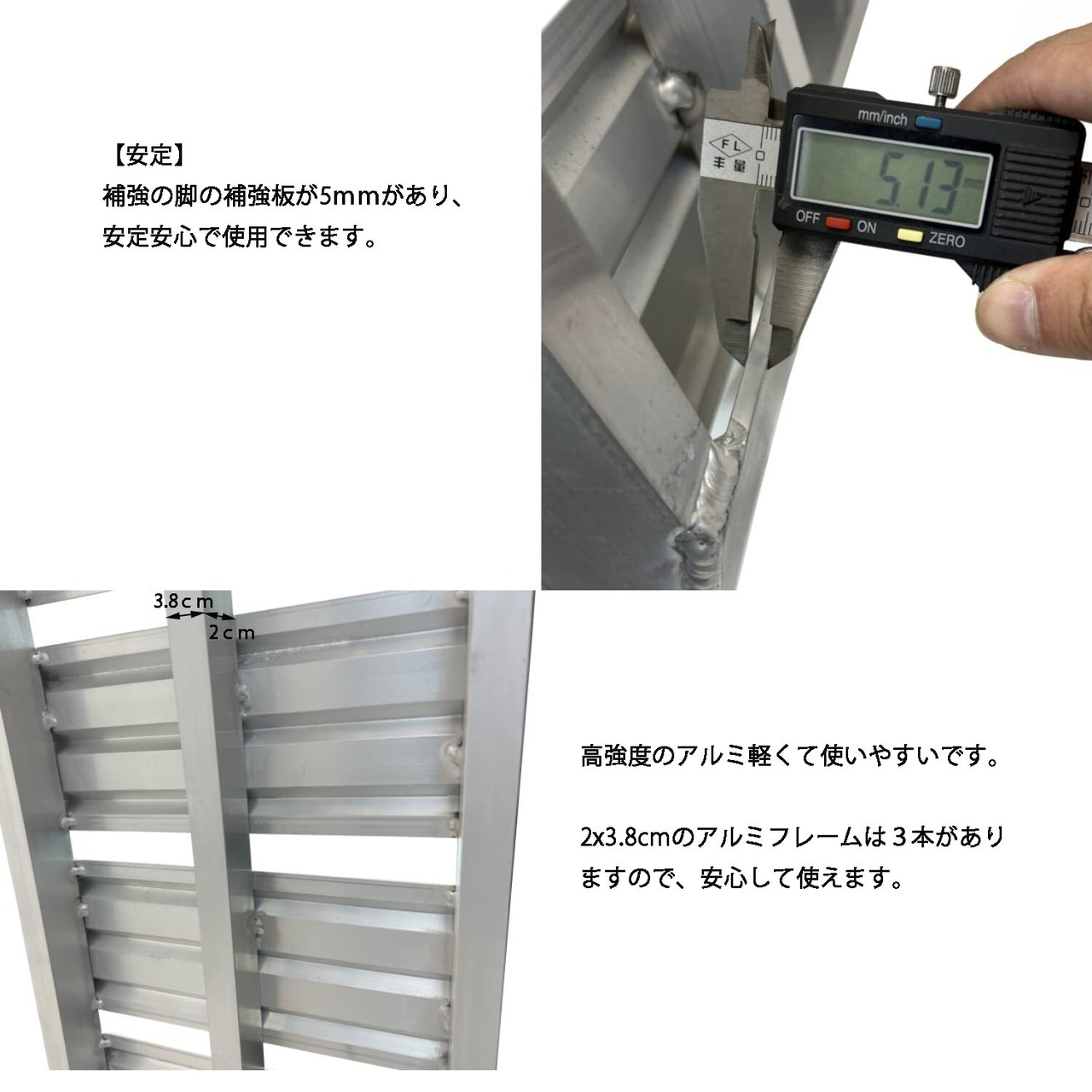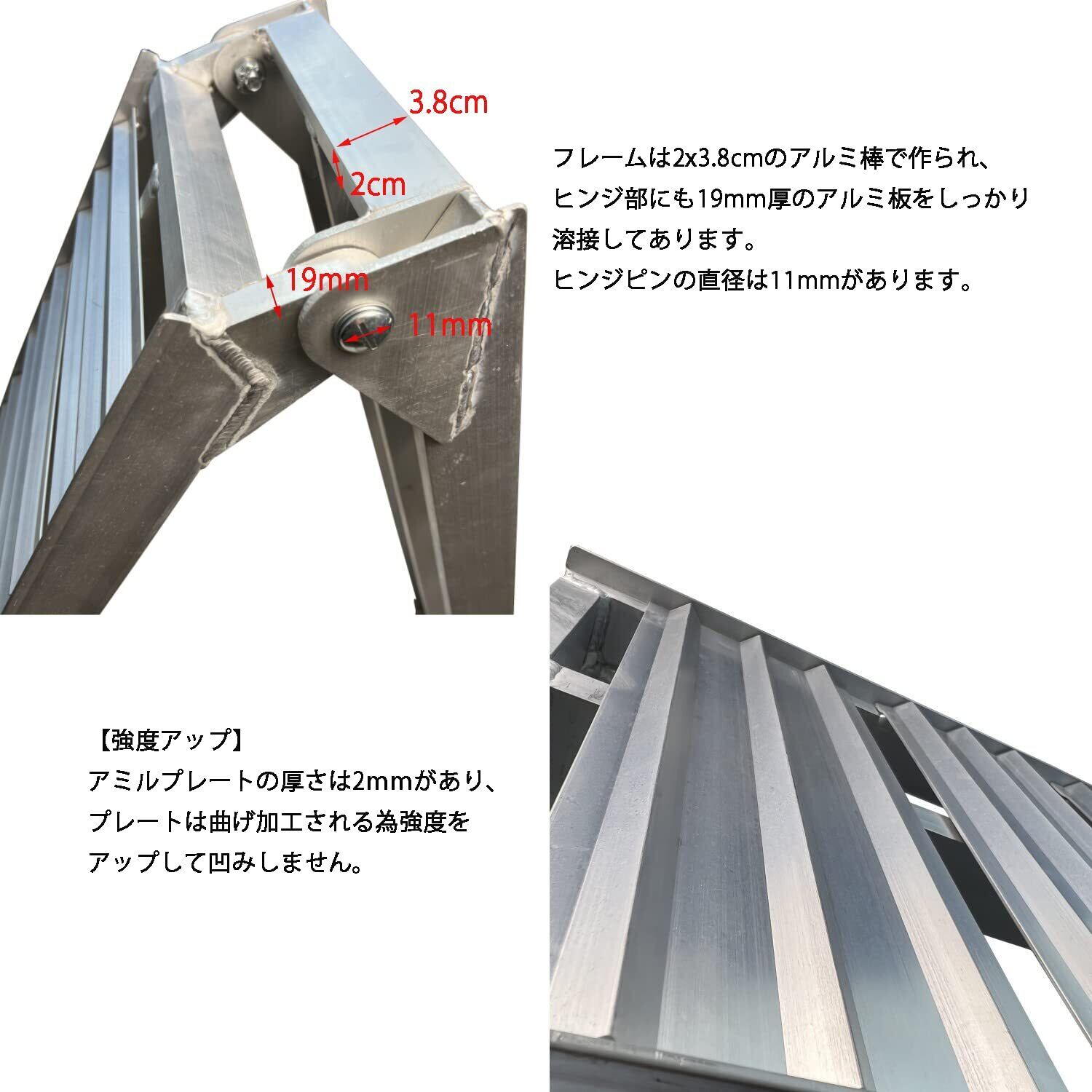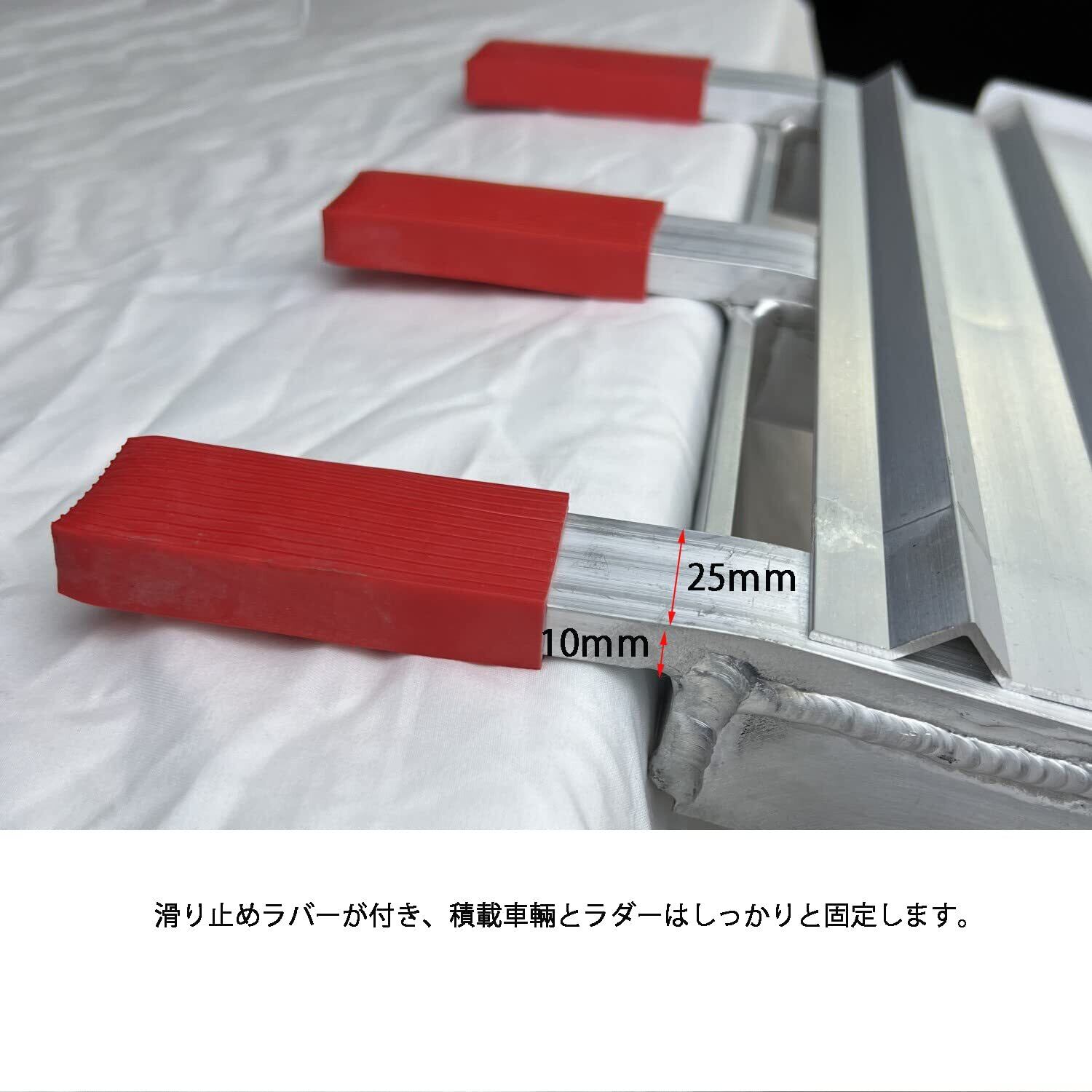 【安定】滑り止めラバーが付き、補強の脚の補強板が5mmがあり、安定安心で使用できます。サブベルトが付属しますので、積載車輛とラダーはしっかりと固定してくだい。