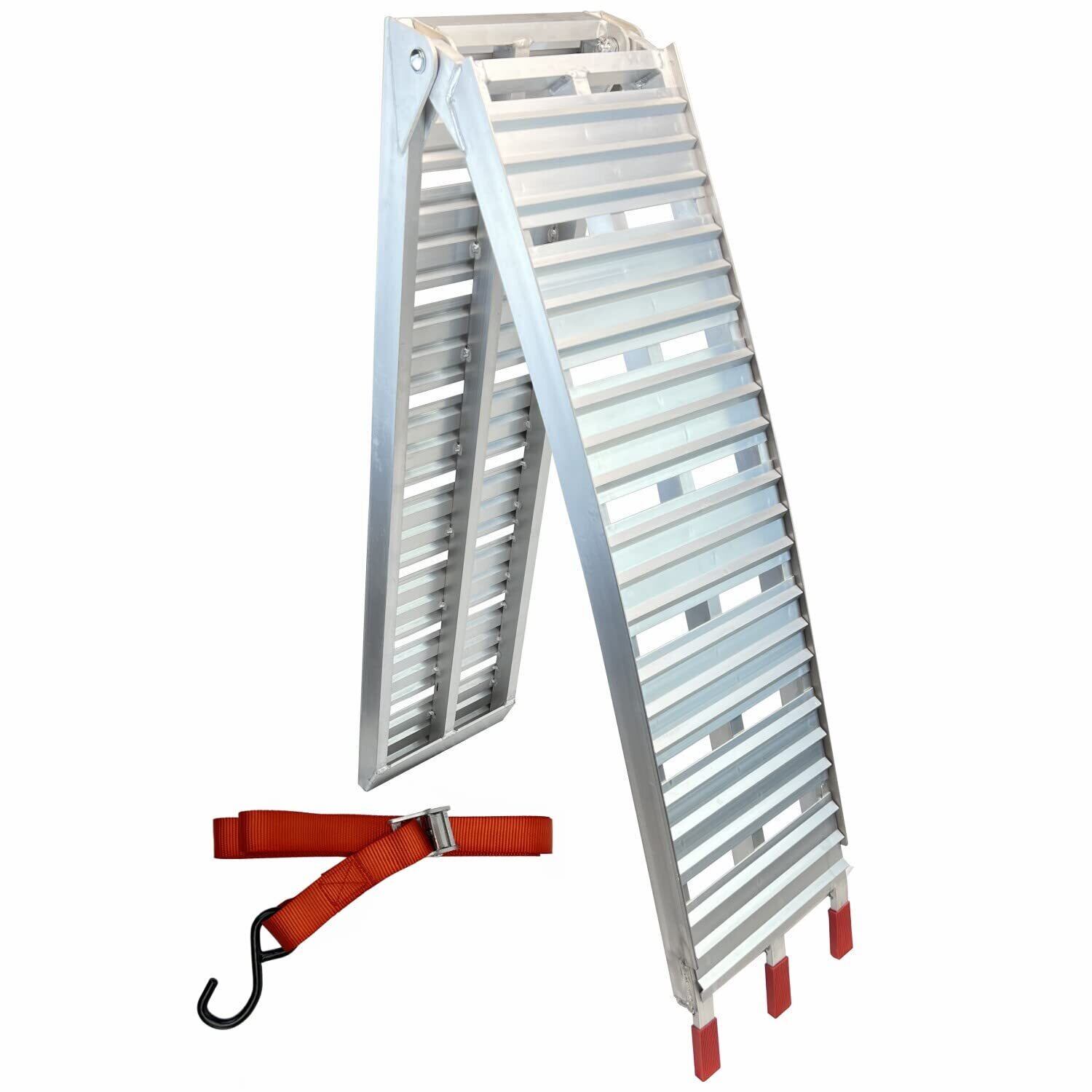 【数量限定】バイク用 アルミ ラダー アルミブリッジ 長さ216cm*幅28.5cm アルミプレート強度強化 耐荷重340kg 折り畳み式 アルミラダーレール アルミラダー 頑丈 サブベルト付き