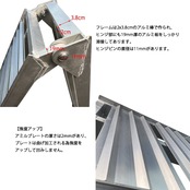 【頑丈な素材】フレームは2x3.8cmのアルミ棒で作られ、ヒンジ部にも19mm厚のアルミ板をしっかり溶接してあります。ヒンジピンの直径は11mmがあります。