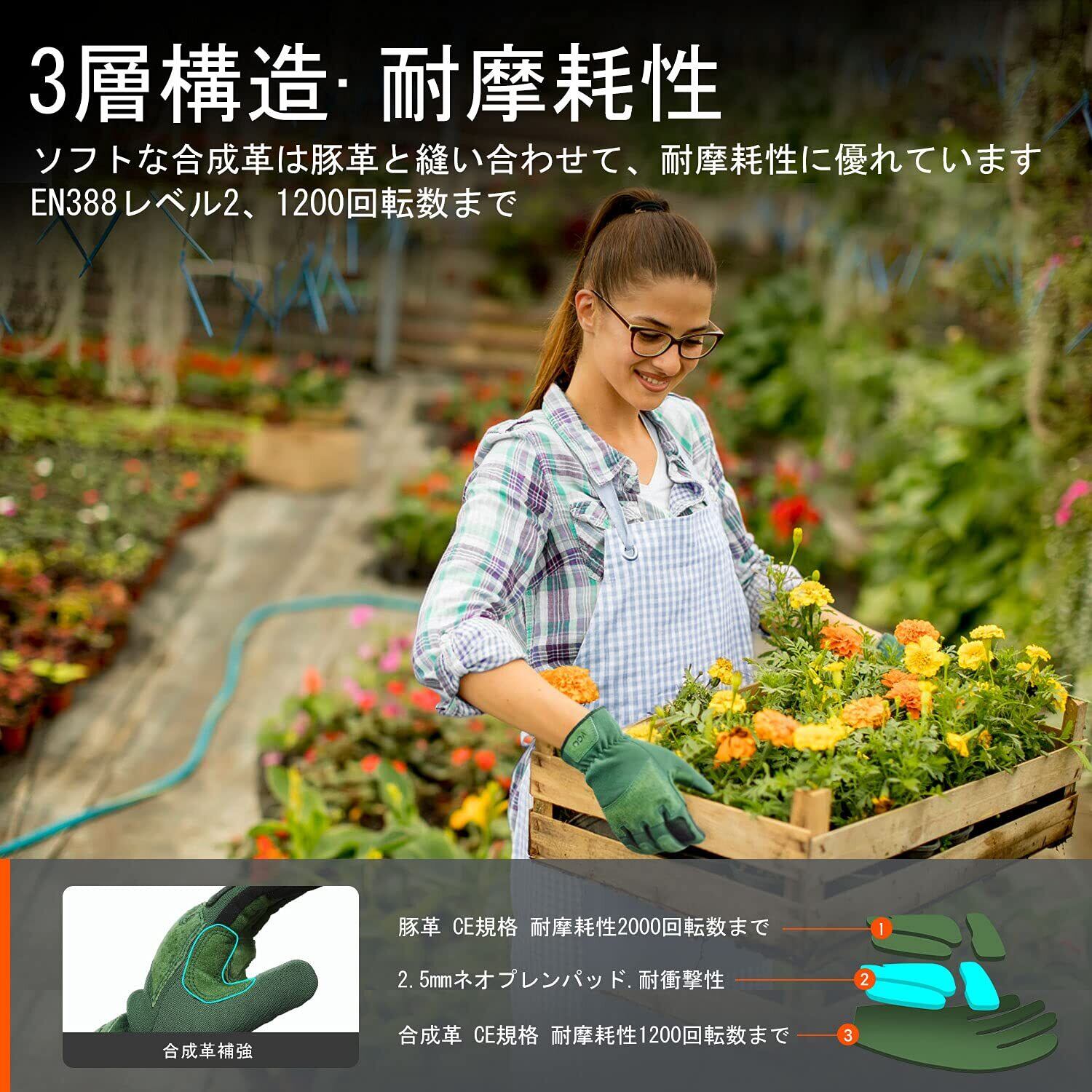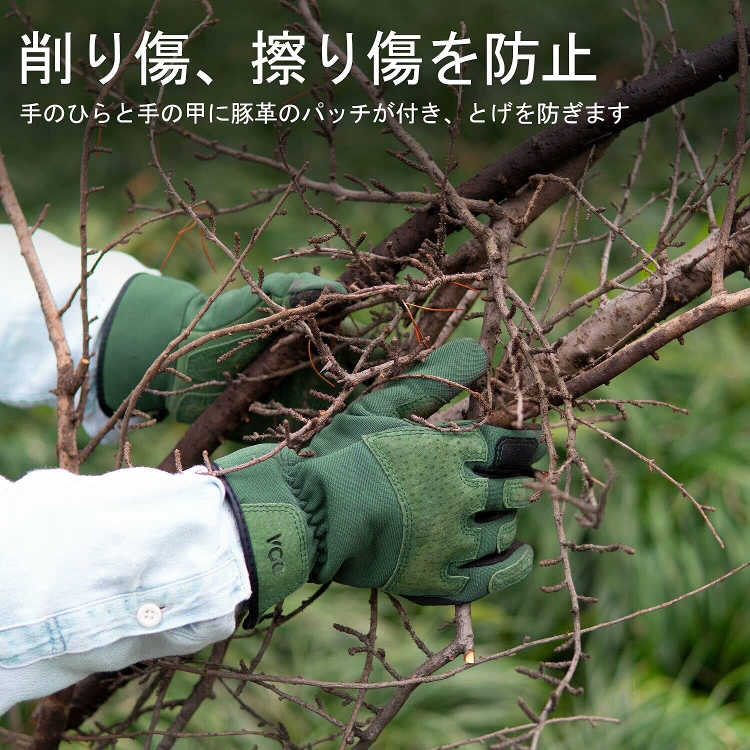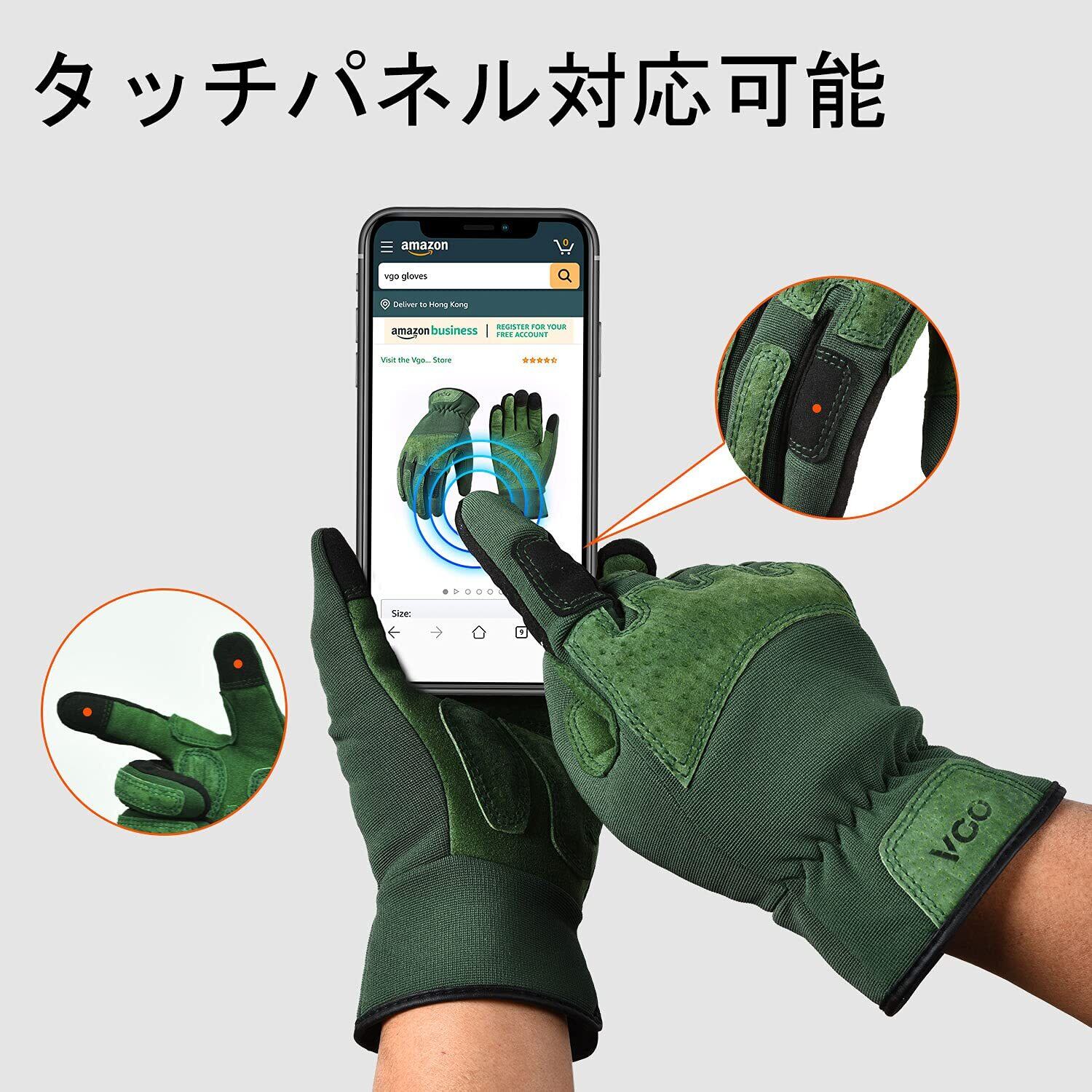[Vgo...] ガーデン手袋 ガーデニング グローブ 合成革手袋 園芸用手袋 草刈り 男性 作業用 園芸 手袋 補強当て付き タッチパネル 振動低減 トゲ防止 ガーデニング 手袋 (L,グリーン,SL7471-FM)