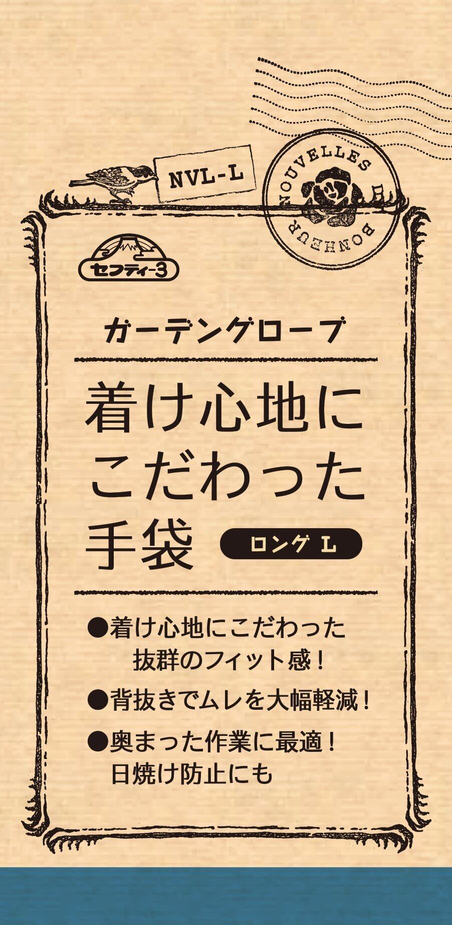 セフティー3(Safety-3) ガーデングローブ 着け心地にこだわった手袋 ネイビー ロング L NVL-L