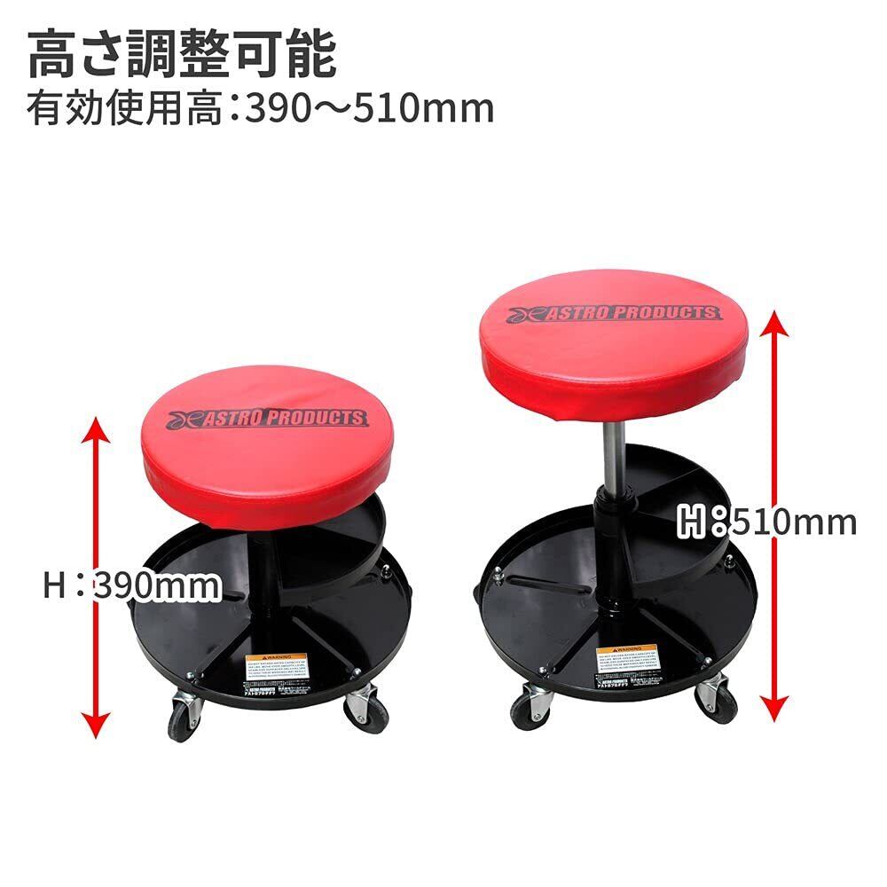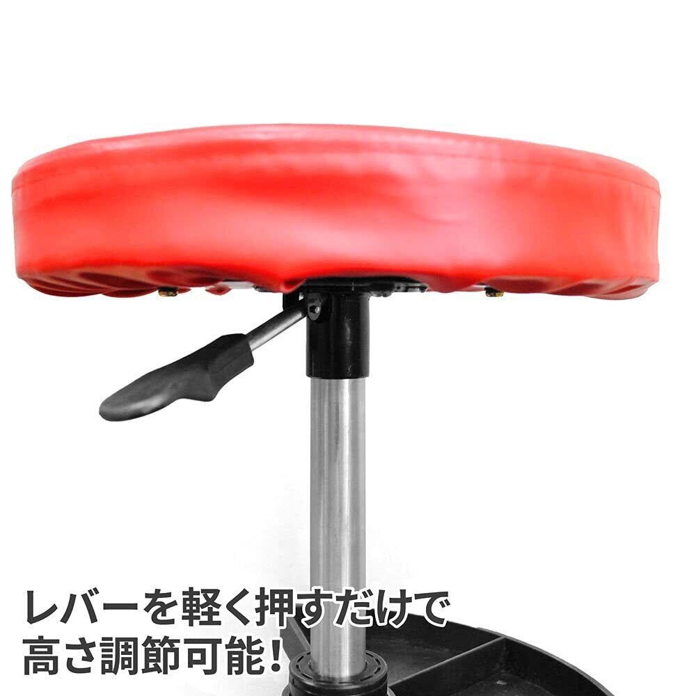ガレージで中腰作業が多い方に腰の負担を和らげるキャスター移動式の椅子です。