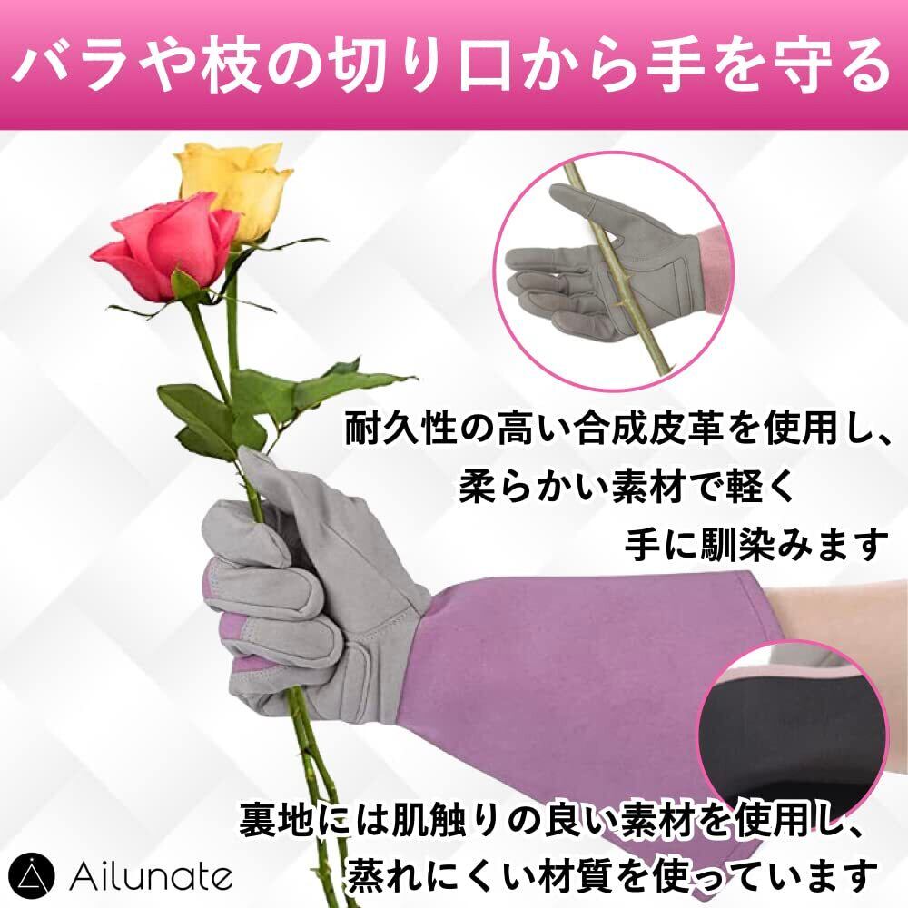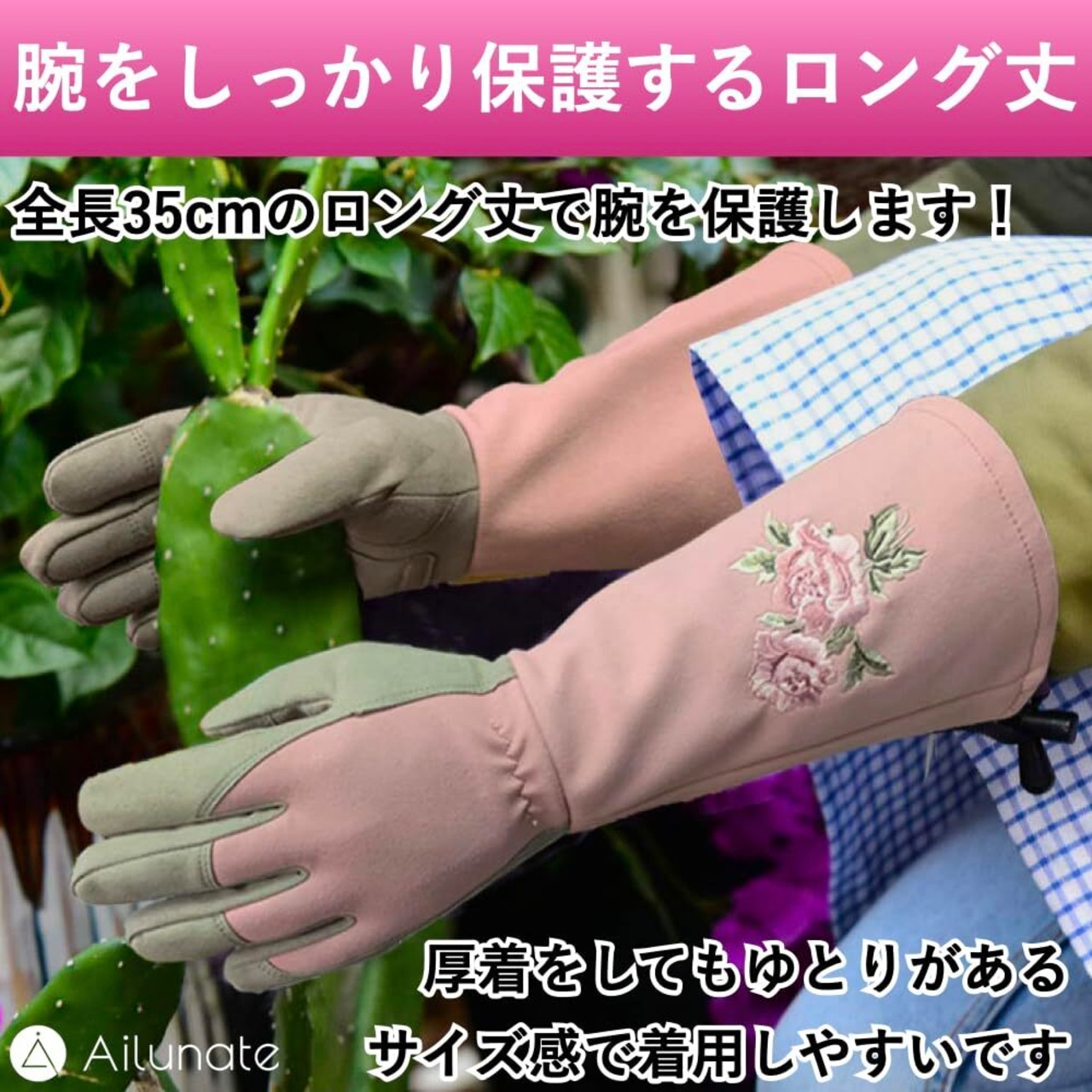 [Ailunate] ガーデングローブ 園芸用手袋 バラ ロング トゲ防止 革 ガーデニンググローブ おしゃれ レディース (Mサイズ, オリーブ)
