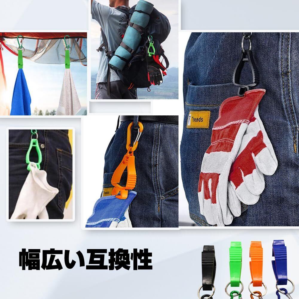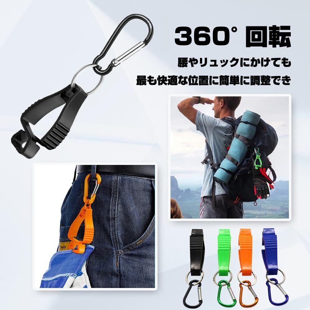 【2025最新】[KEAIDUO] 手袋クリップ 高強度 グローブクリップ 改良新型 360°回転 グローブホルダー 紛失防止 軽量 耐久性 手袋ホルダー タオルホルダー カラビナクリップ 手袋収納 黒 ホルダー(4個セット) 片側カラビナタイプ 改良型カラビナ キーパーグローブホルダー 手袋-タオル-様々な小さなツールを掛けることができ、屋外のハイキング、釣り