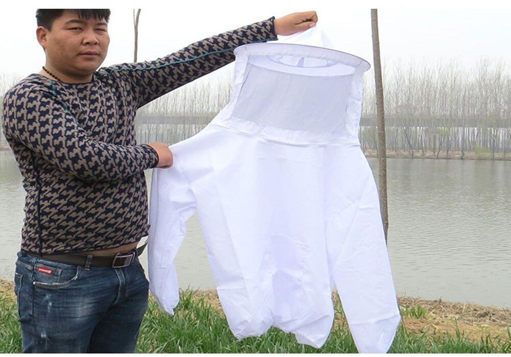 鉄壁 防護服 養蜂 害虫駆除 虫よけ フェイスネット 付き (ホワイト)
