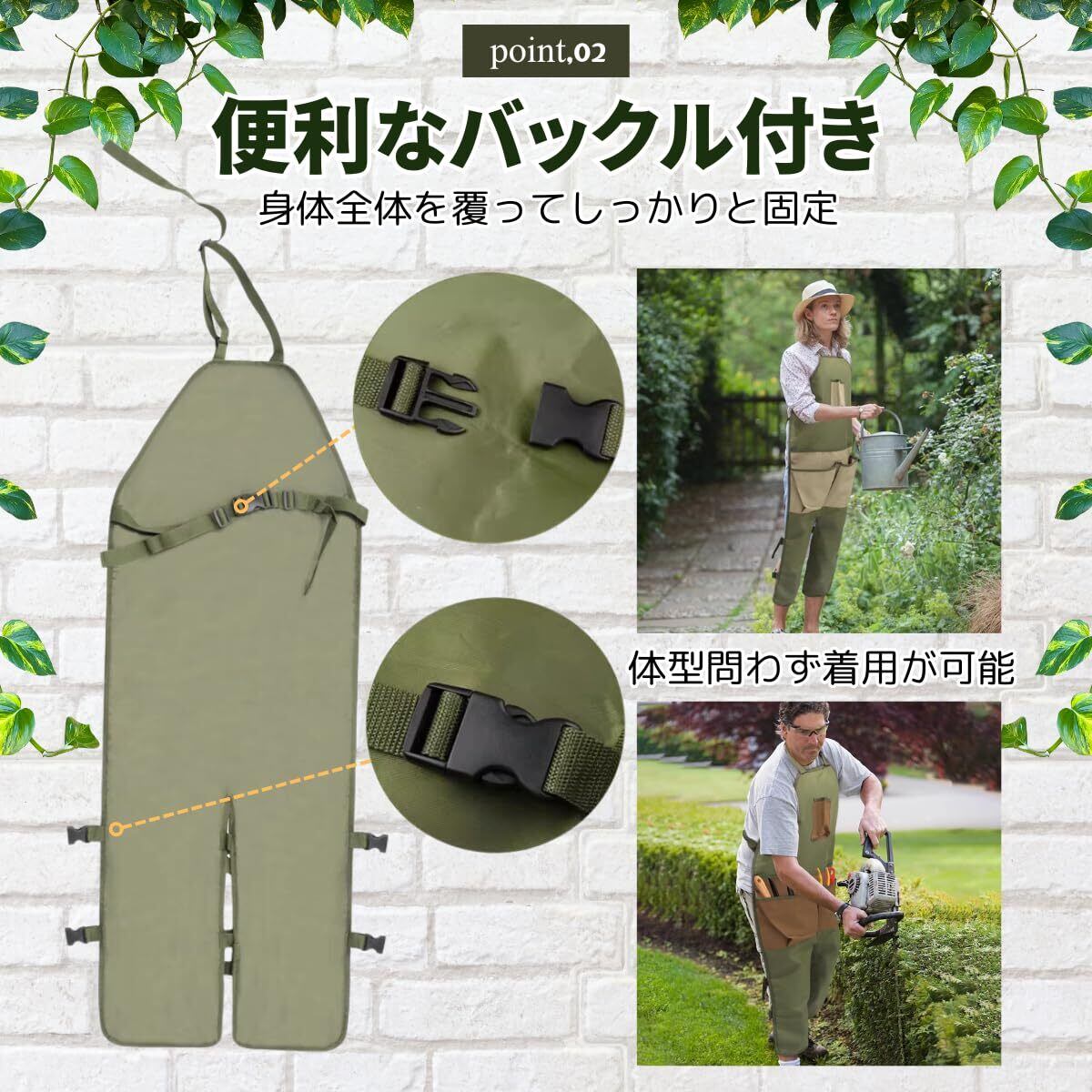 【商品仕様】作業用ガーデンエプロンです。庭仕事やガーデニング、農作業に草刈りなど様々な場面で 重宝し、足元を保護やよごれの軽減が期待できます。
