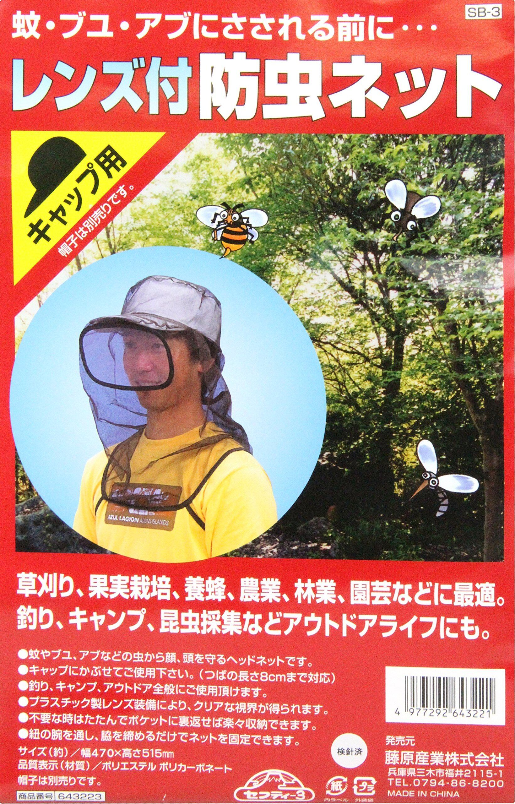 【限定セール】セフティー3(Safety-3) 防虫フェイスガード レンズ付ネット キャップ取付用 フリーサイズ SB-3