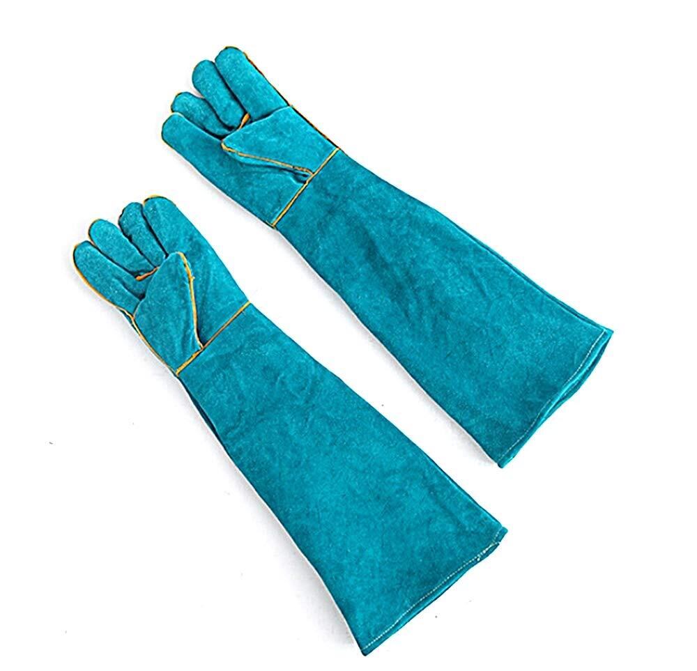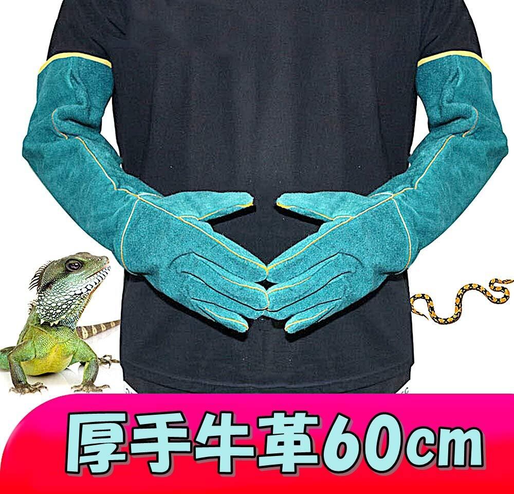 ペットの飼育、調教、トレーニングに適したグローブです。長さ60cmの厚手の牛革製ですので、爪や牙からの引っ掻きや噛みつきから腕全体をしっかり保護できます。
