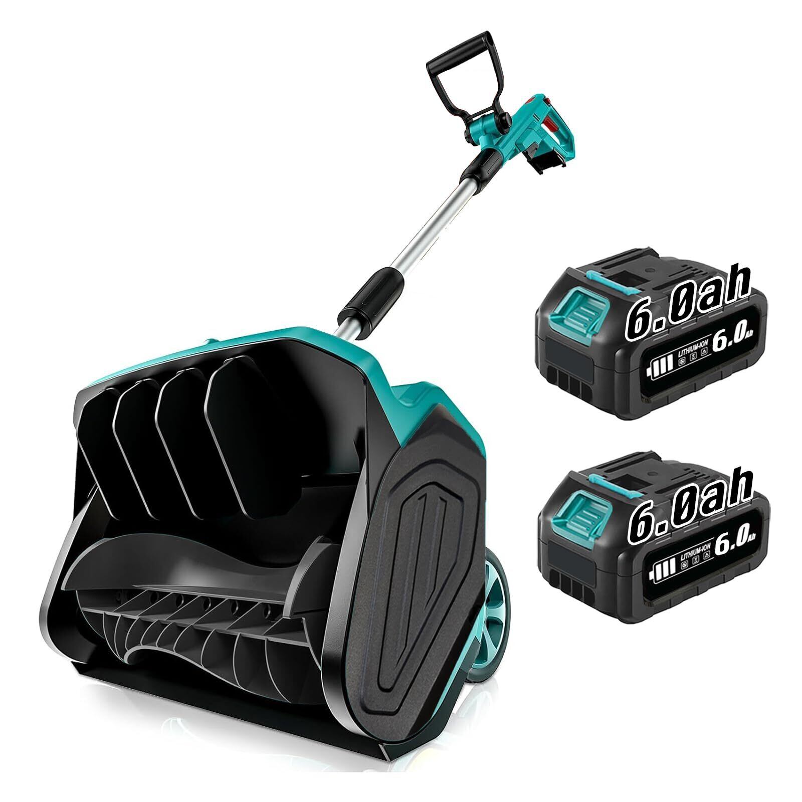 【特価セール】【2025最新強化版】電動除雪機 電動スノーショベル 充電式 コードレス 家庭用 小型軽量 【マキタ18v電池互換・6.0Ahバッテリー2個急速充電器付PSE認定・LED残量表示 連続使用最大60分 ブラシレスモーター 無段階変速】低騒音 折りたたみ式 電動スコップ除雪幅32cm 家庭庭園芸用DIYさまざまな路面・保管が使用の容易さ・簡単操作・ホリデーギフト 日本語説明書付 (青)