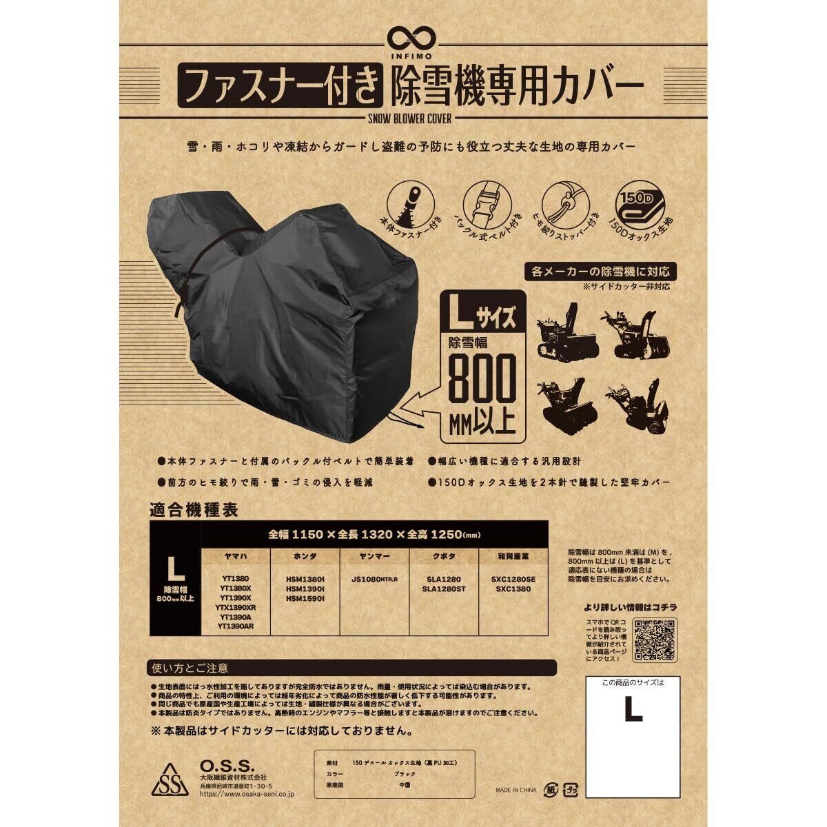 INFIMO (大阪繊維資材) ファスナー付き除雪機カバーL 除雪機ロータリータイプ汎用カバー ブラック ブレード幅800mm以上 IMA95404