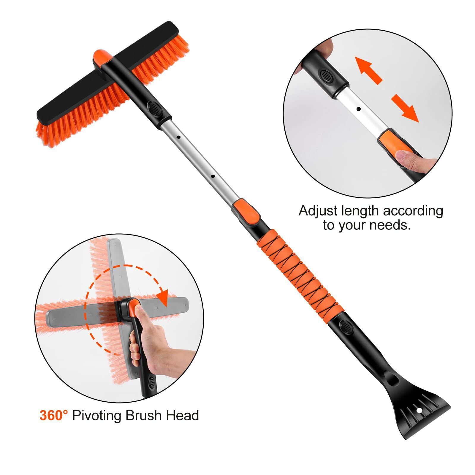 【360°回転ブラシ】さまざまな角度から雪を取り除くことができます。 また、スノーブラシを水平、垂直、斜めの方向にロックすることができ、適切に使用できます。