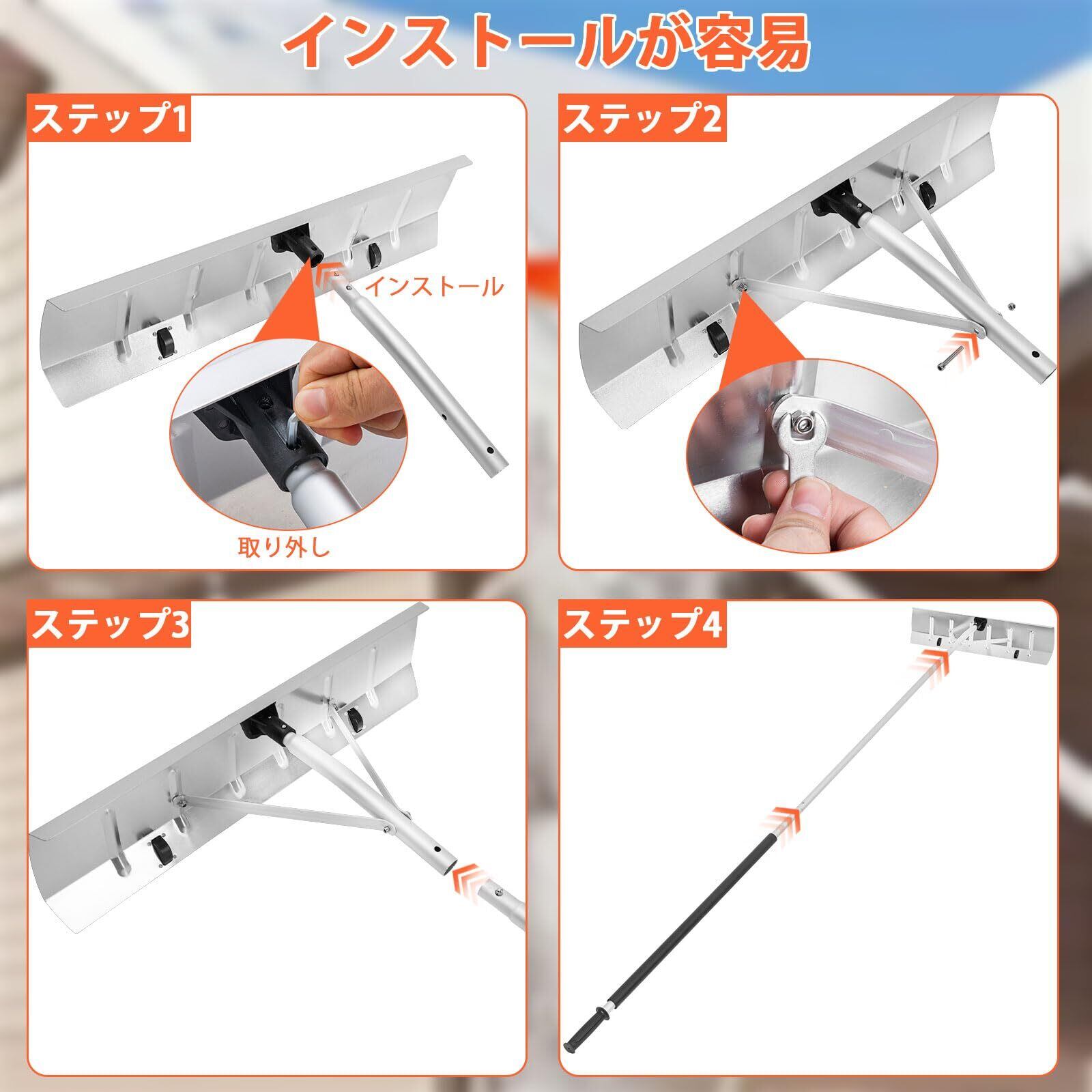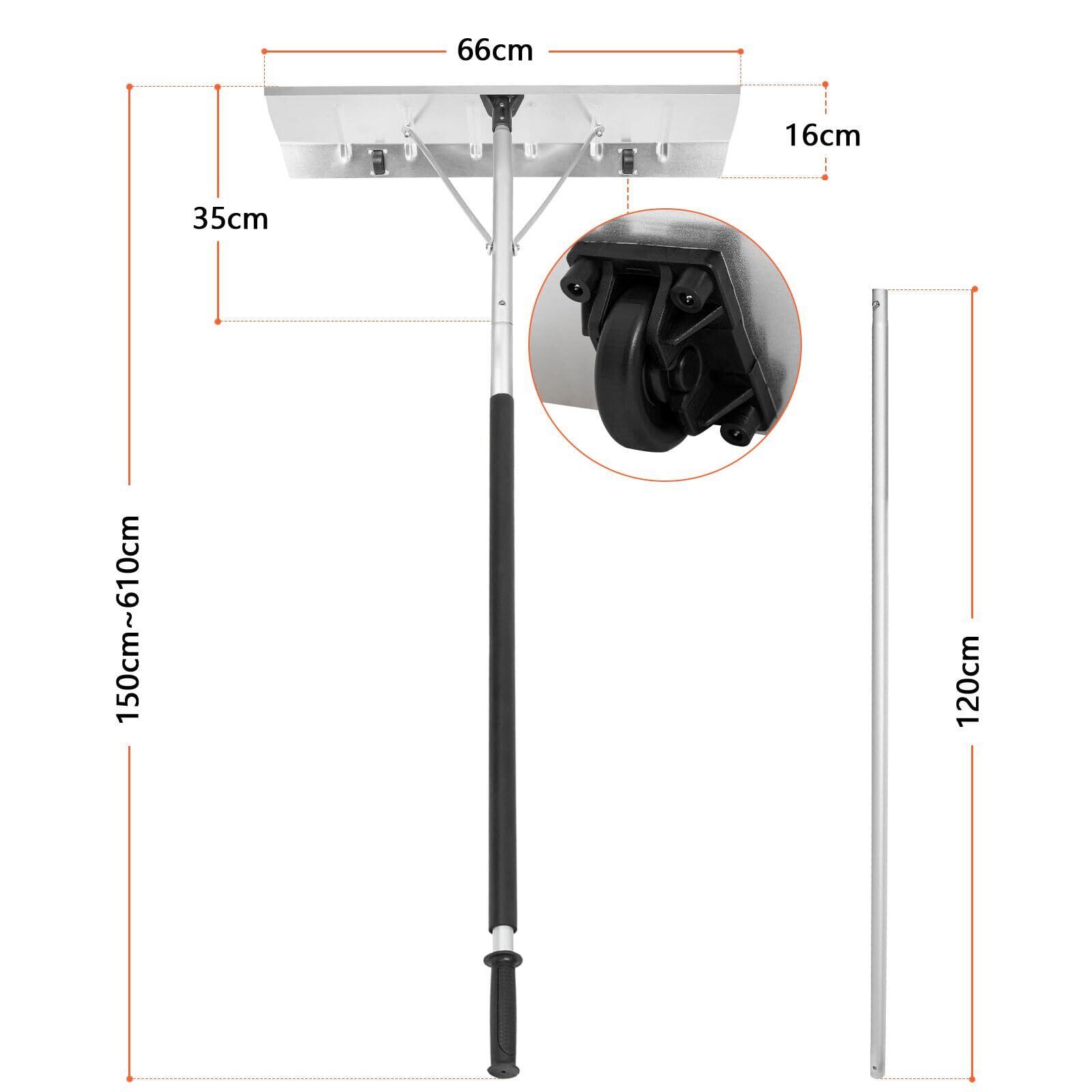 効率的な除雪のための66cmの大きなブレード:屋根スノーレーキには66cm幅のブレード設計が装備されており、広い領域の雪を素早く取り除くことができます。広角で錆びにくいアルミ合金製のブレードは、削るたびに効率が上がり、除雪に必要な時間と労力を大幅に削減します。冬場の積雪によるトラブルを心配する必要がなく、簡単に屋根をきれいに保つことができます。