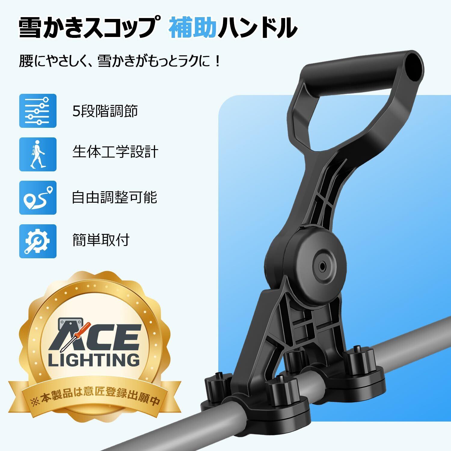 【2025最新】ACE LIGHTING 雪かきスコップ 補助ハンドル 除雪スコップ 取っ手 車載 雪ショベル 作業補助用持ち手 シャベル 雪搔き 大雪対策 組み立て式 除雪用品 強化ABS構造 軽量 手首負担軽減 腰を守る 雪かき作業ツール 5段階調節【ハンドルのみ】