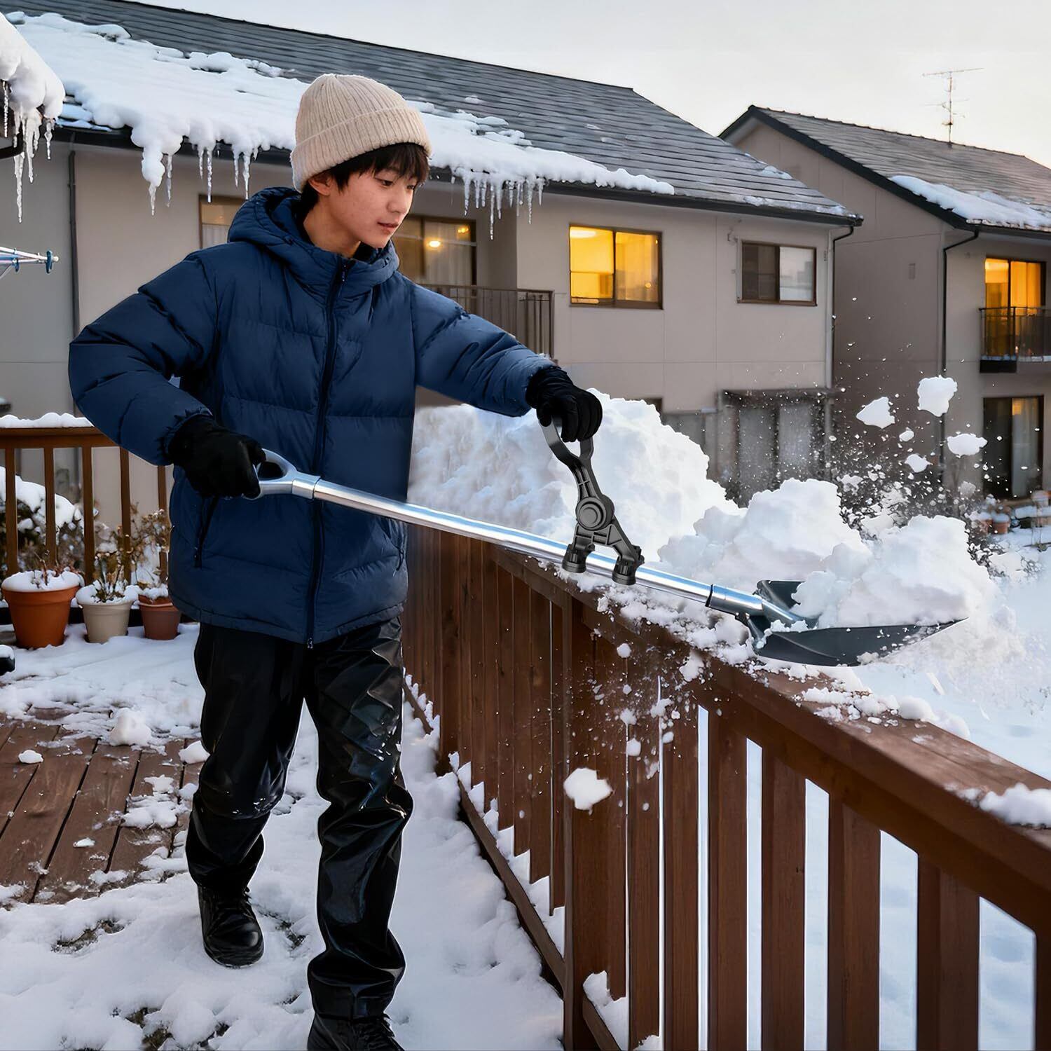 【高耐久ABS素材】本製品には、寒冷地や屋外環境でも変形・破損しにくい高強度ABS樹脂を採用しています。耐衝撃性・耐寒性・耐熱性に優れ、マイナス気温の中でもしっかりとした剛性を維持。軽量ながらも非常に頑丈な構造で、長時間の除雪作業や屋外使用でも手への負担を軽減し、快適な操作性を実現します。