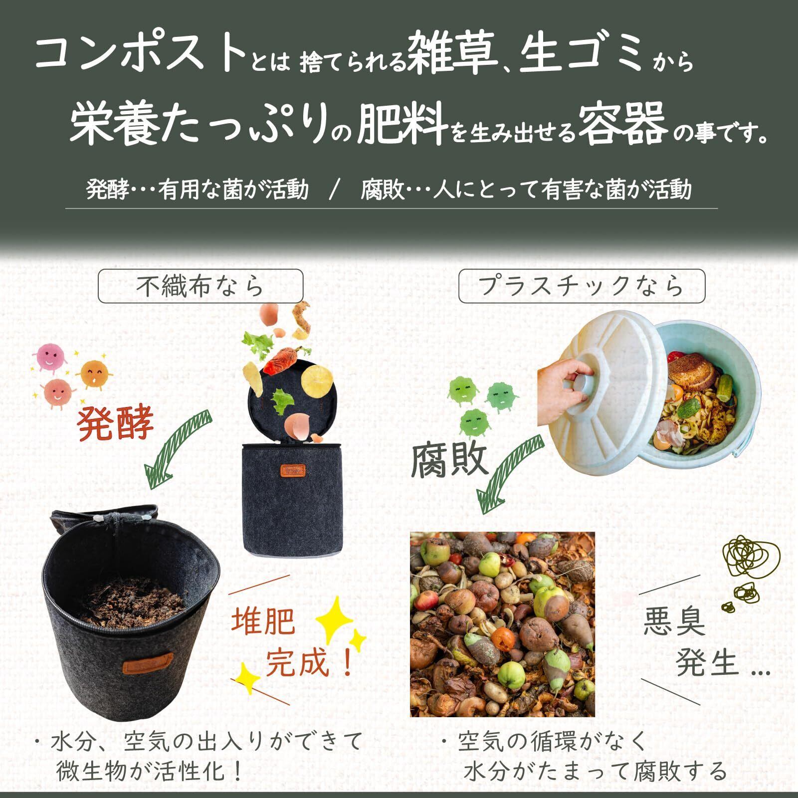 【展開サイズ(約)】35*60cm【収納サイズ(約)】縦30cm 横25cm 高さ10cm / 不織布コンポスト×1点+取り扱い説明書×1点