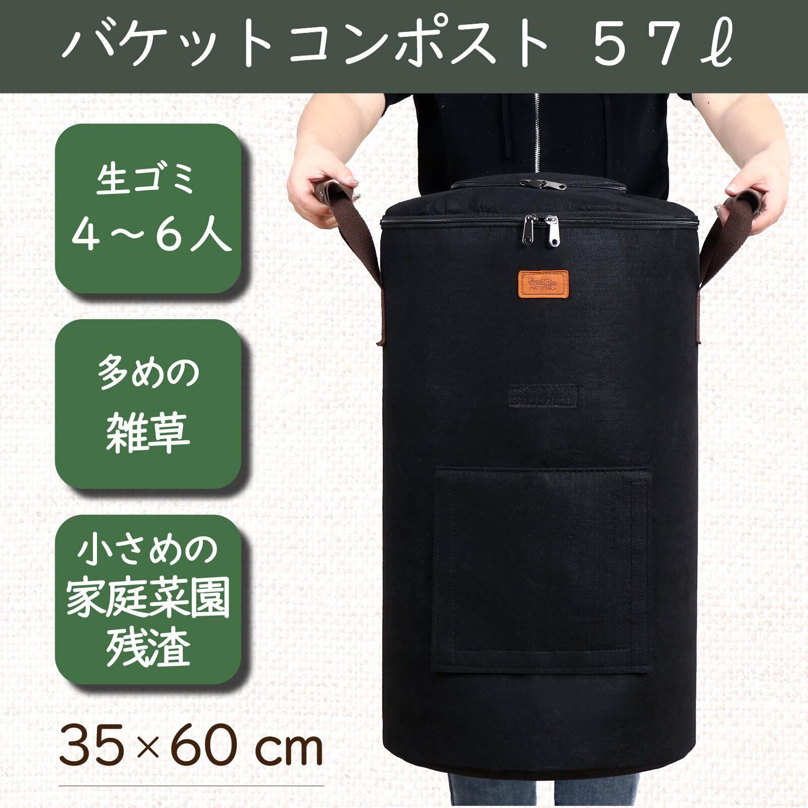 MATIMARU コンポスト バッグ 不織布 (Lサイズ 57L Black,説明書) 家庭用 屋外 こんぽすと生ゴミ処理