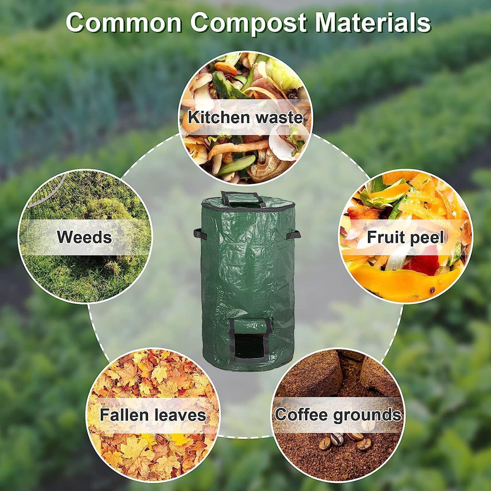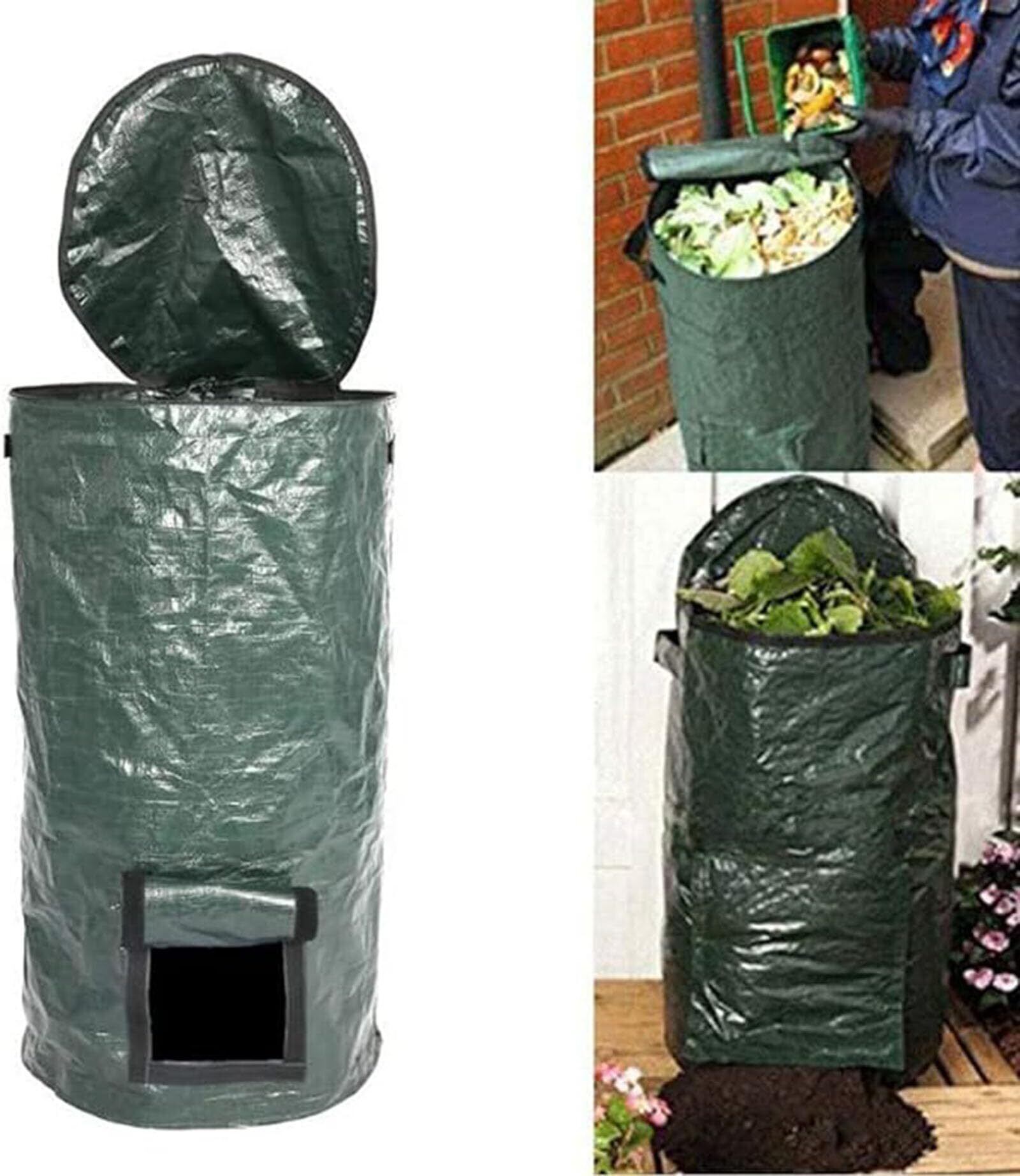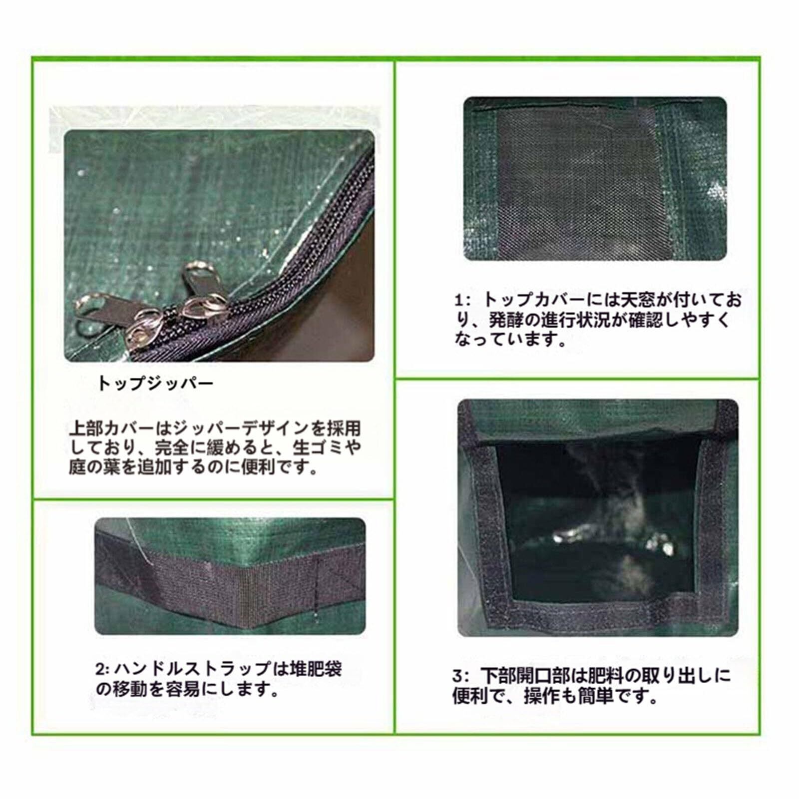 便利なデザイン:バッグの上部にはジッパーの開口部があり、食品、庭のゴミ、肥料などをすばやく収集できます。 バッグの底に窓があり、ベルクロで自由に開閉できるので、直接肥料にアクセスできます。