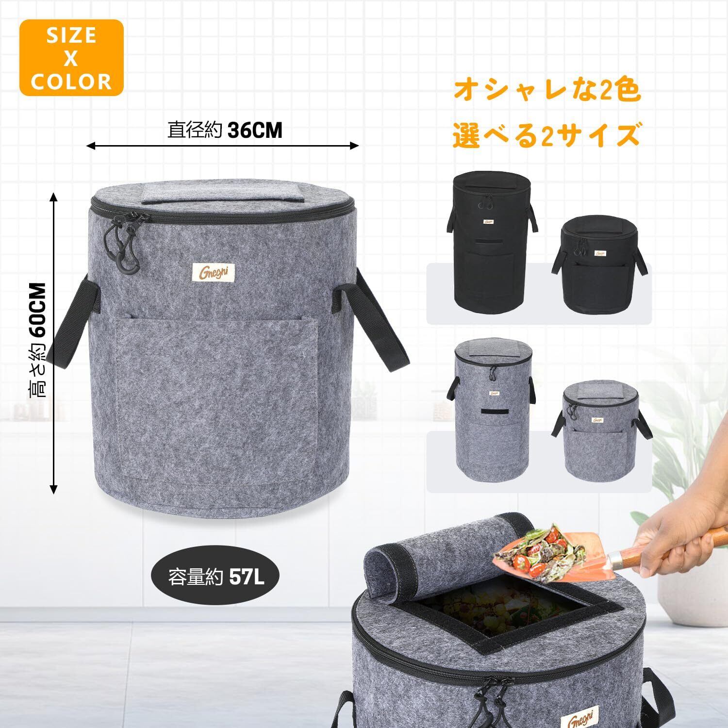 【限定セール】コンポスト バッグ ミニサイズ 家庭用 屋外 容器 生ゴミ処理機 コンポスター 生ごみ 堆肥 肥料 不織布 ゴミ処理機 生ごみ処理機 脱臭 防カビ 堆肥化容器 (グレー, S)