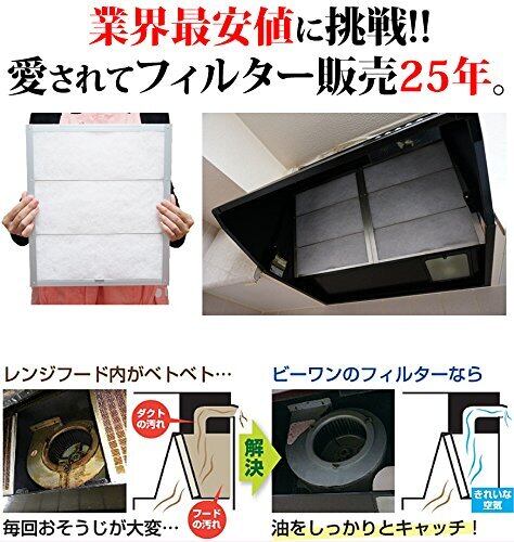 ビーワンショップ 換気扇フィルター (297×341mm) 12枚 換気扇カバー レンジフィルター 特厚1cm 難燃性 国産(A2)