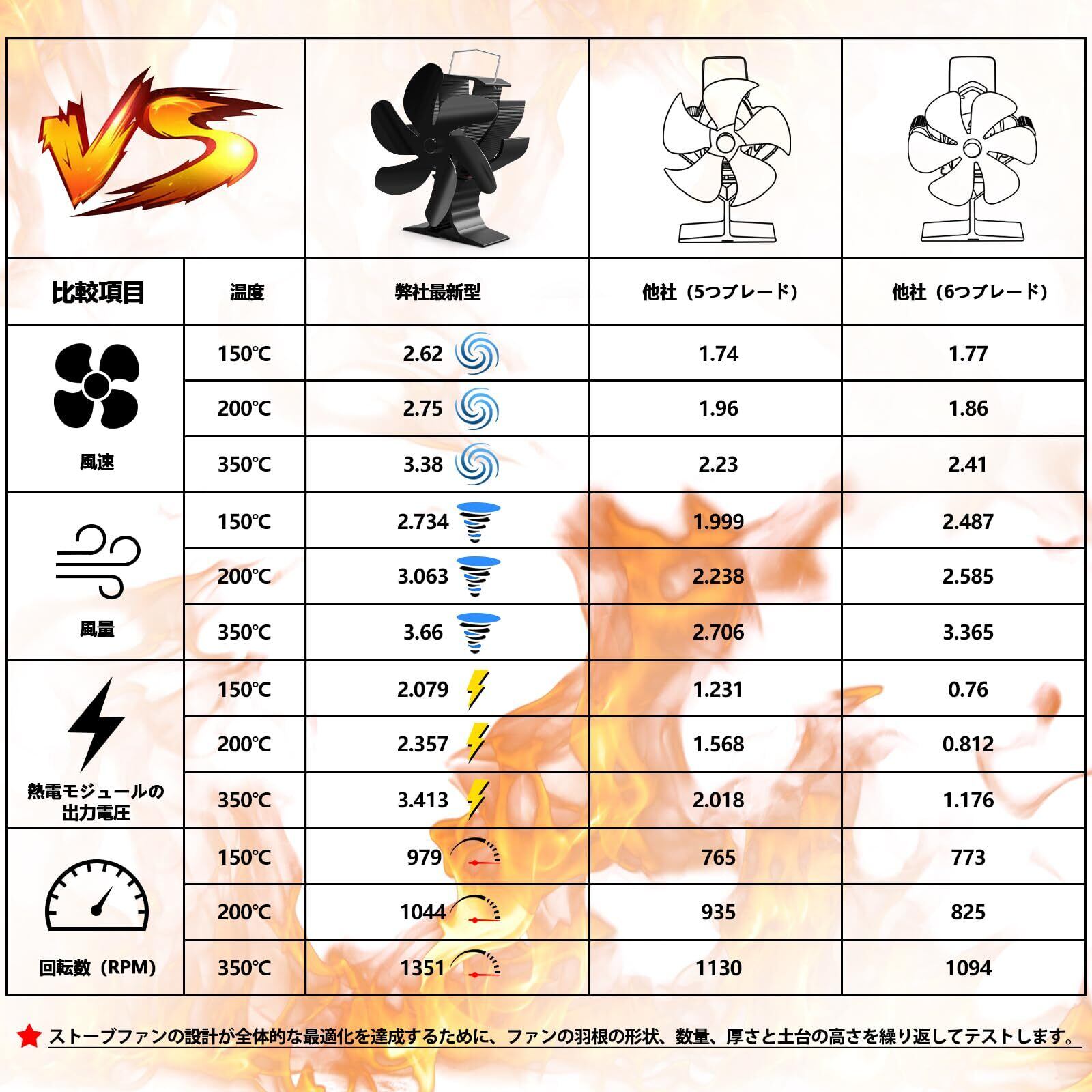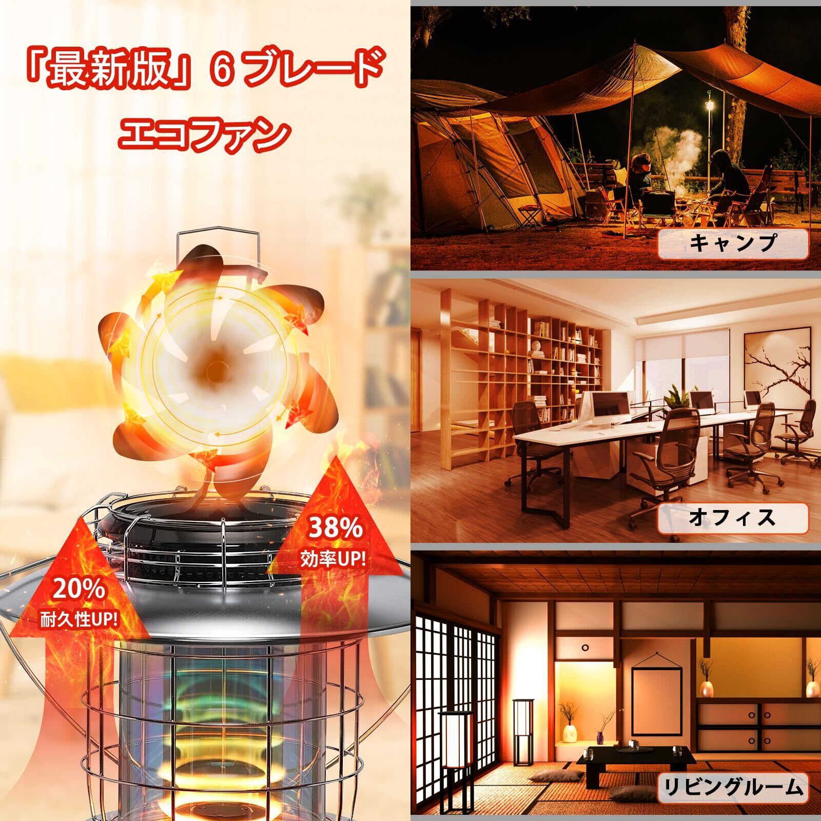 Signstek ストーブファン 石油ストーブファン 薪ストーブ用ファン エコファン 小型 静音 キャンプ用 火力熱炉 扇風機 空気循環 6枚羽 薪ストーブ 扇風機 電源不要 省エネ 暖炉ファン 温度計付き
