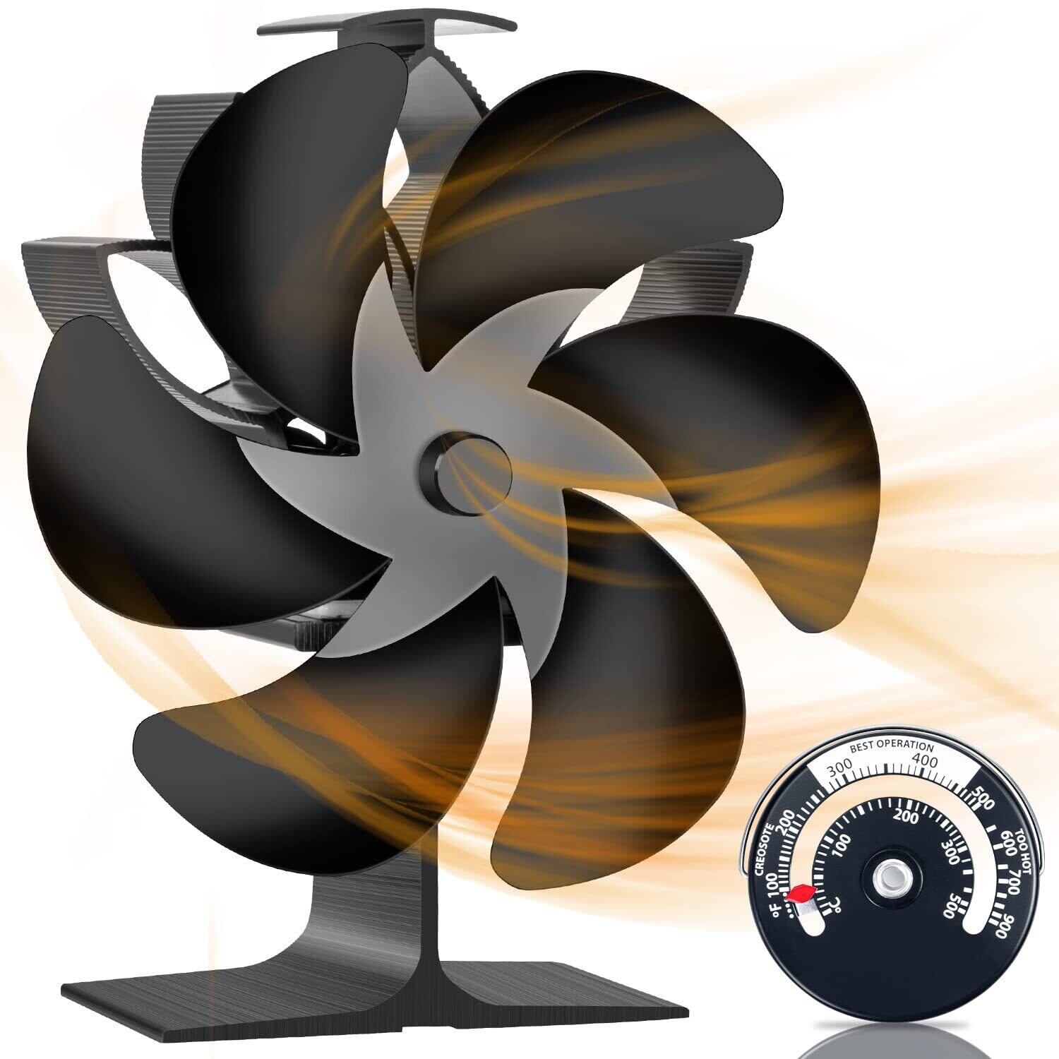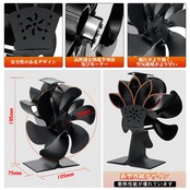 【限定セール】ストーブファン 電源不要 自動 静音 省エネ エコファン 室内空気循環 薪ストーブ/暖炉用品 暖房用 防寒対策 6つブレード 火力熱炉ファン 温度計付き(ブラック)
