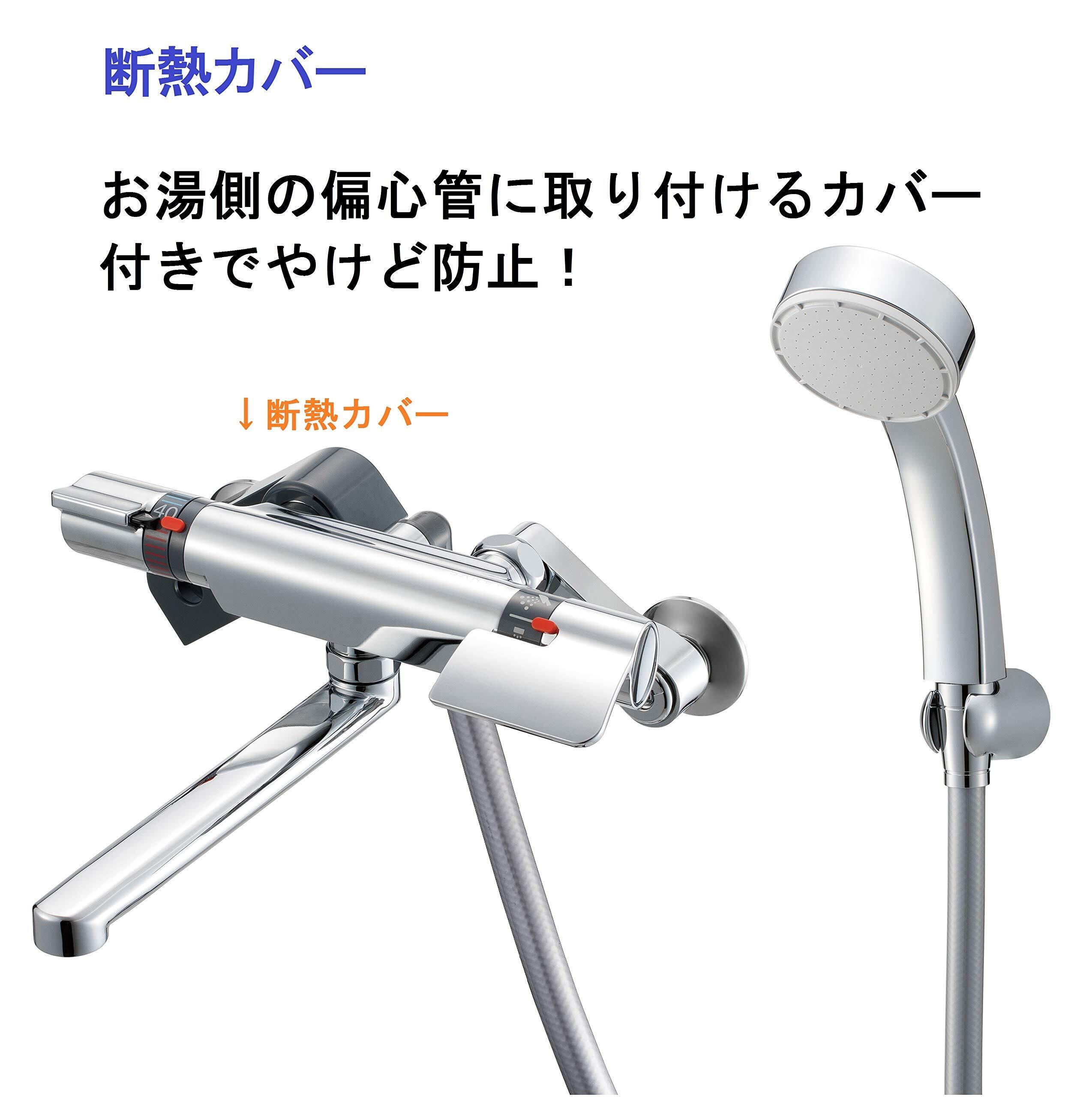 【断熱】水栓本体に触れても熱くない断熱ボディに湯側偏心管のカバー付き。うっかりさわって「あちっ」となるのを防ぎます。
