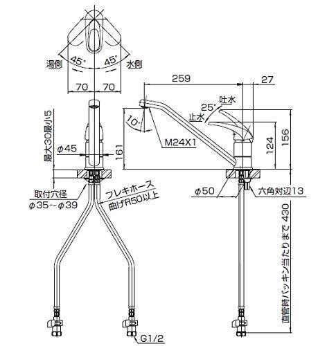 【在庫限り】SANEI(サンエイ) シングルワンホール混合栓 キッチン用 泡沫吐水 取付けはボルト式 K87110JV-13