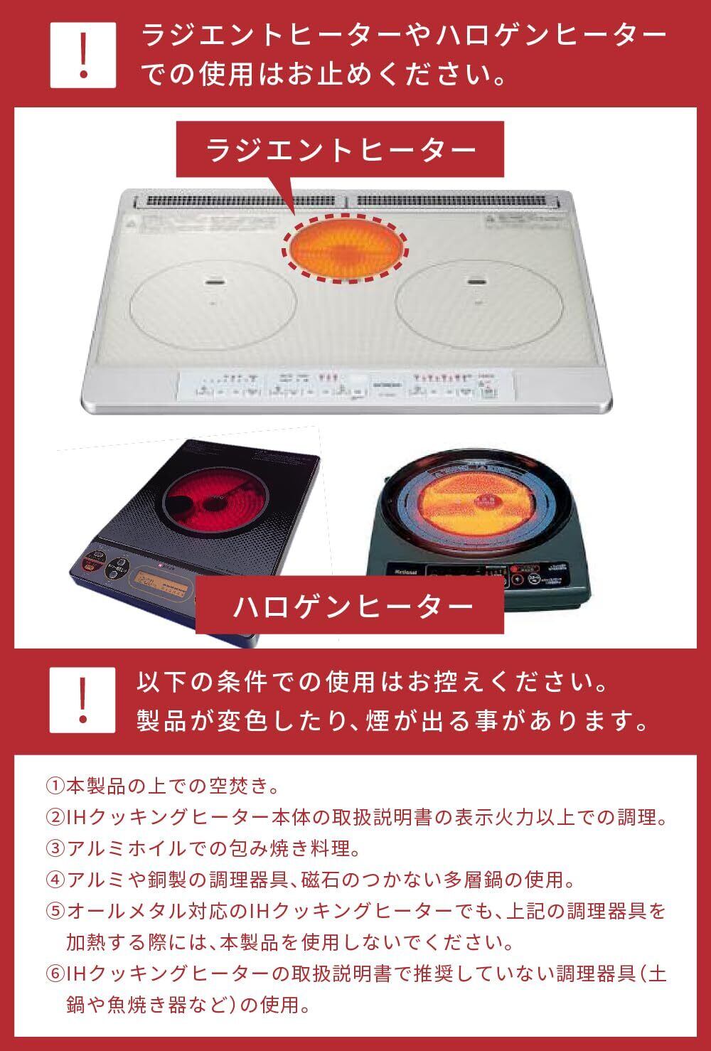 IHヒーターの保護ができる。トッププレートの焼け焦げやキズ防止に。