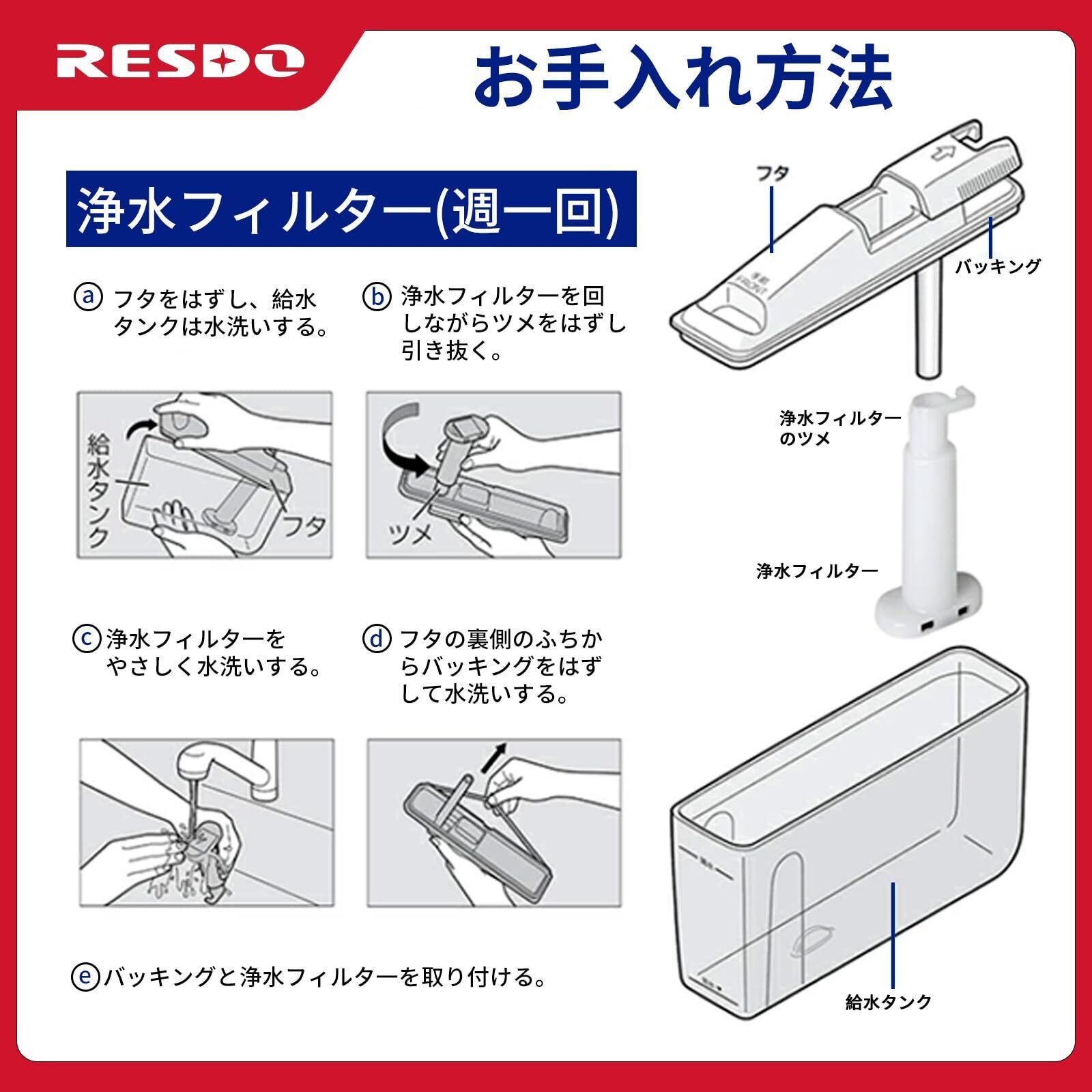 「お手入れ目安」1週間に1回。浄水フィルターに水あかなどが詰まっていると製氷できないことがあります。
