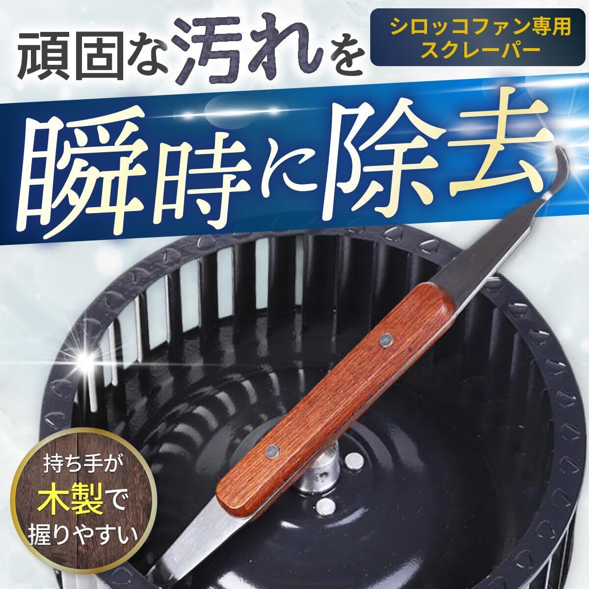 【シロッコファン専用設計・羽根にぴったりフィット】羽根の隙間にしっかり入り込む1.3cm幅の専用設計で、形状に沿って汚れを逃さず削ぎ落とせるスクレーパーです。浴室やキッチン、トイレ、さらには飲食店(ラーメン屋、居酒屋、和食店、揚げ物店など)にも多く設置されているシロッコファンの清掃に対応。市販品では届きにくい場所にもアプローチできます。※使用前に羽根の隙間サイズをご確認ください。