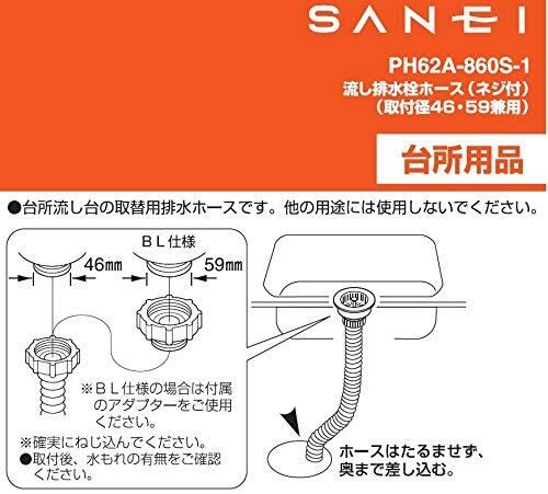 【特価セール】SANEI(サンエイ) 流し排水栓ホース アダプター付き ネジ式 1m PH62A-860S-1