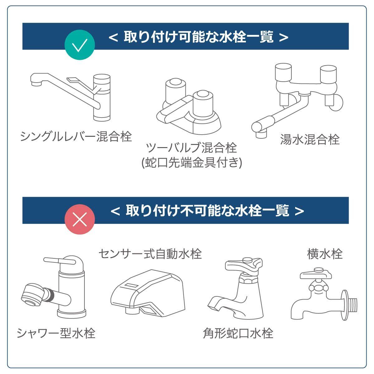 国内汎用仕様 W22山20(M22✕1.25mm)メネジを採用。蛇口先端金具(泡沫金具)がネジ式で回して取り外すと蛇口側の外側にネジ山が見えている蛇口であれば、ほとんどのメーカー様に直接お取り付けいただけます。※吐水部分が引き出せる蛇口(引き出しホース式・ハンドシャワー型等)、自動センサー式の水栓にはお取り付けできません。