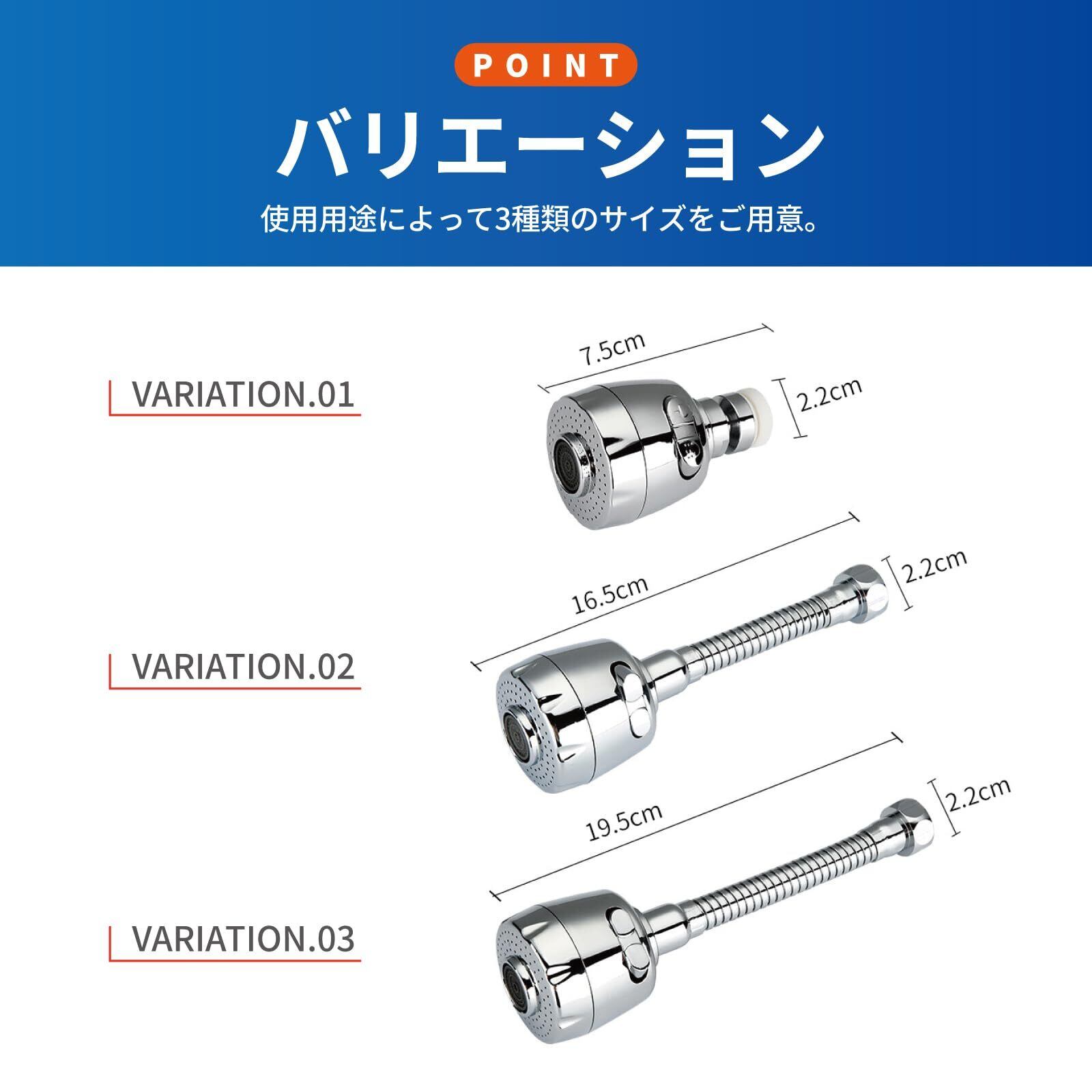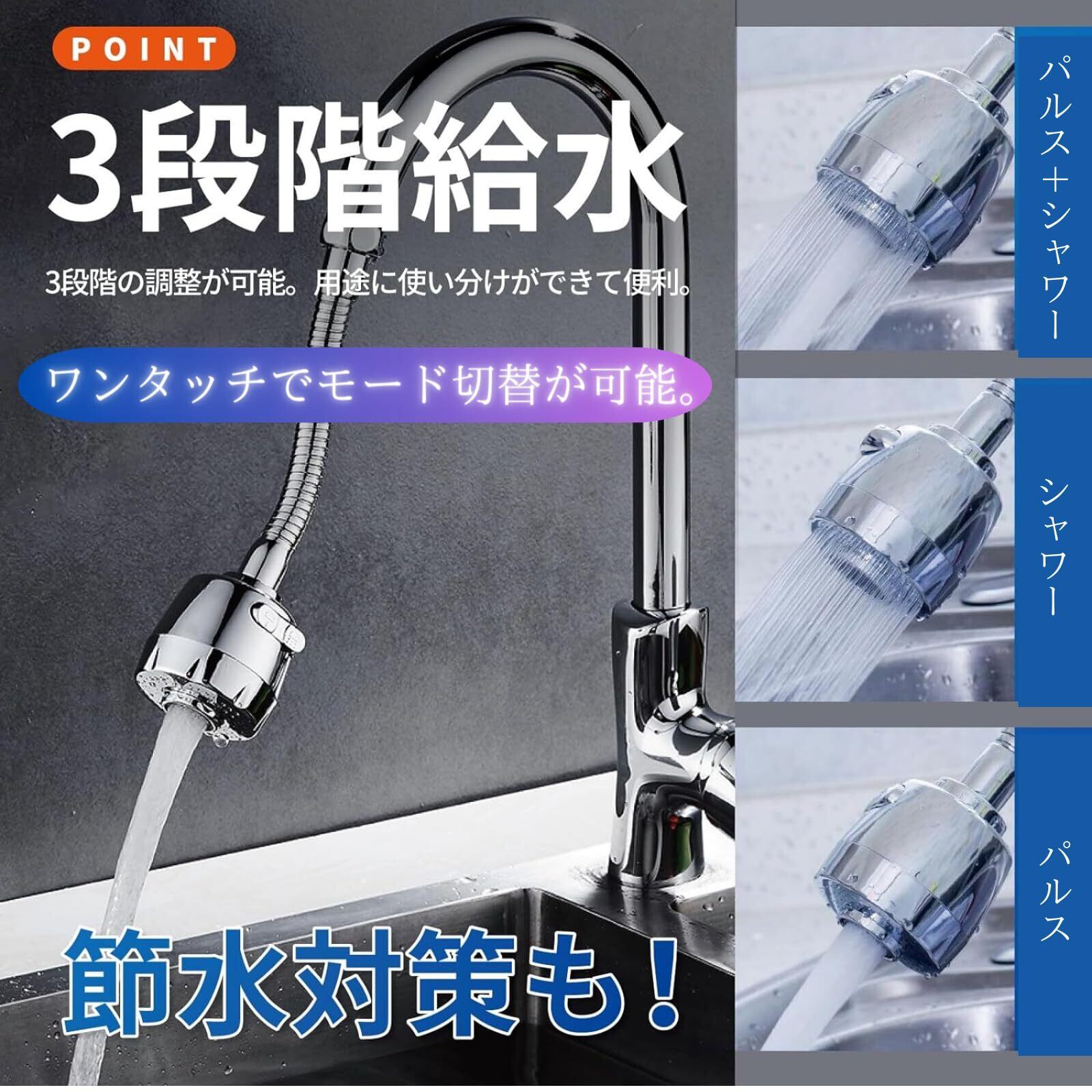 SAMIKAGO 水道 蛇口 シャワー 節水 360度回転 3段階 ワンタッチ切り替え 洗面台 キッチン 水栓 交換 可動型 (16.5㎝)