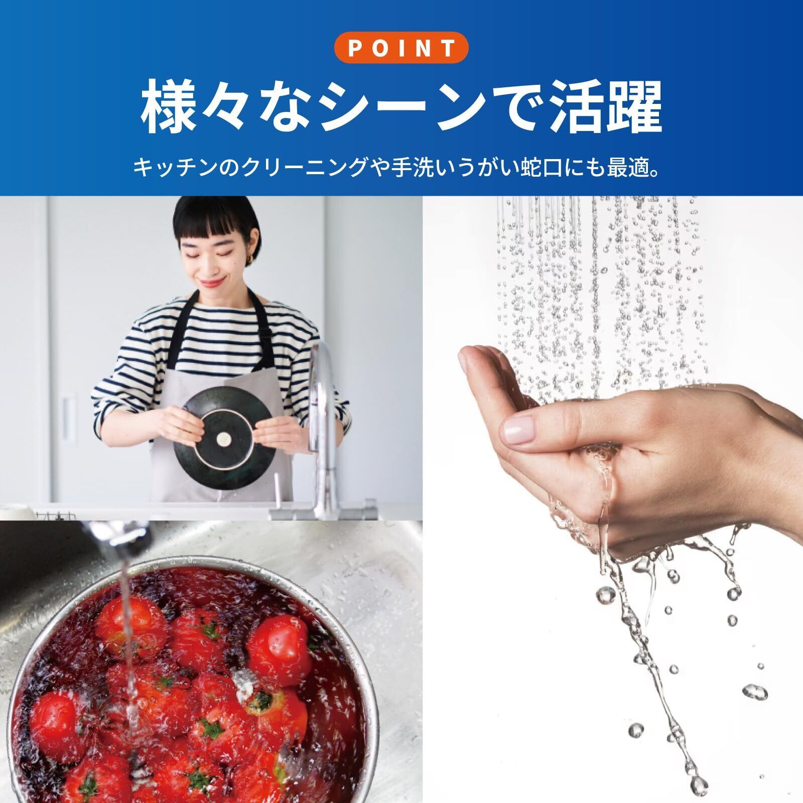 【取付場所】家庭用のキッチンはもちろん、その他にも、浴室、洗面台、お手洗いなど様々な蛇口に取り付けることが可能です。