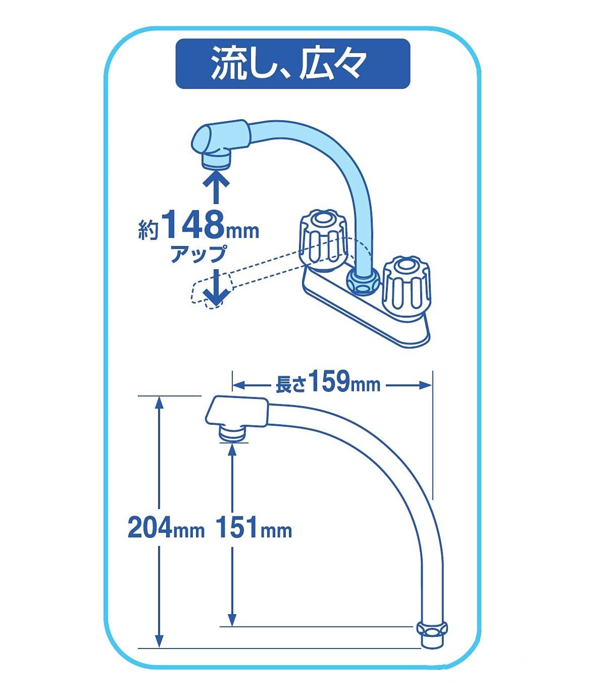 主にキッチン用の台付混合栓に取り付けるパイプです。