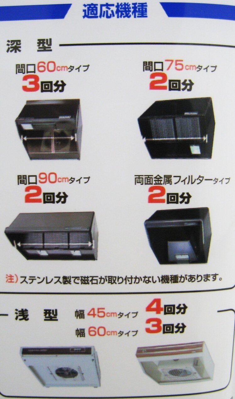 取付方法:磁石でとりつけますが、こちらの商品は取替用の為、磁石がついていません。初めてご購入される方は別売の「ニッパク 厚っ! レンジフードフィルター ハンドカットタイプ 1.8m 磁石付」をお買い求めください。