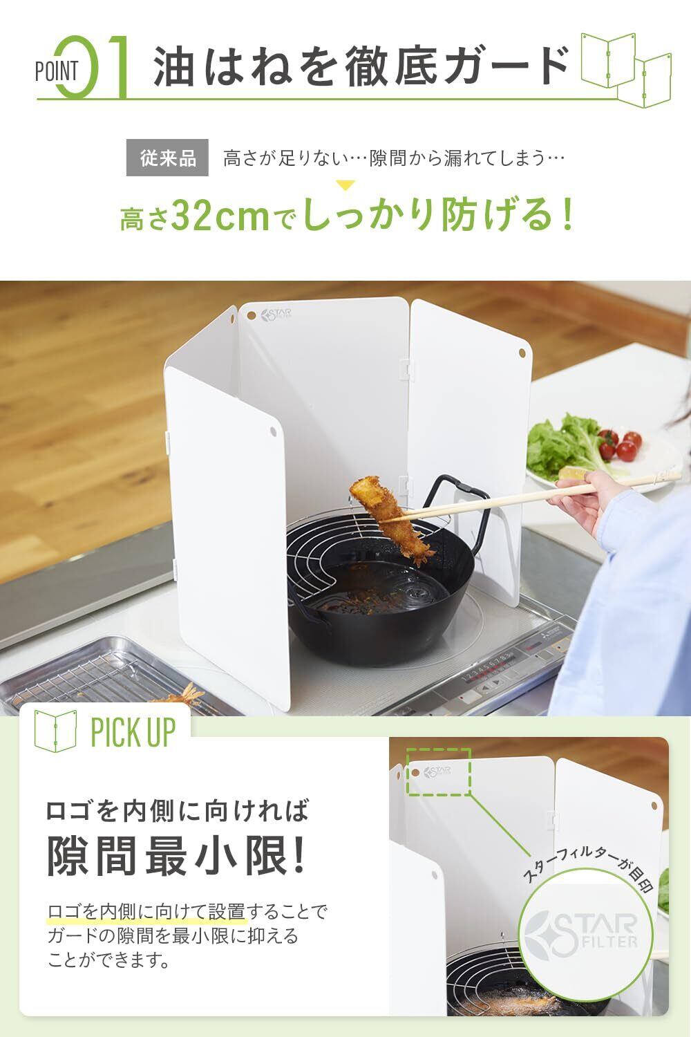 スターフィルター 油はねガード W レンジガード IH ガスコンロ用 折りたたみ式 食洗機対応 油跳ね 油ハネ 隙間ゼロ 薄型 ダブル コンパクト収納 お手入れ簡単 スチール製 高さ32cm 壁掛けOK 2面×2組セット